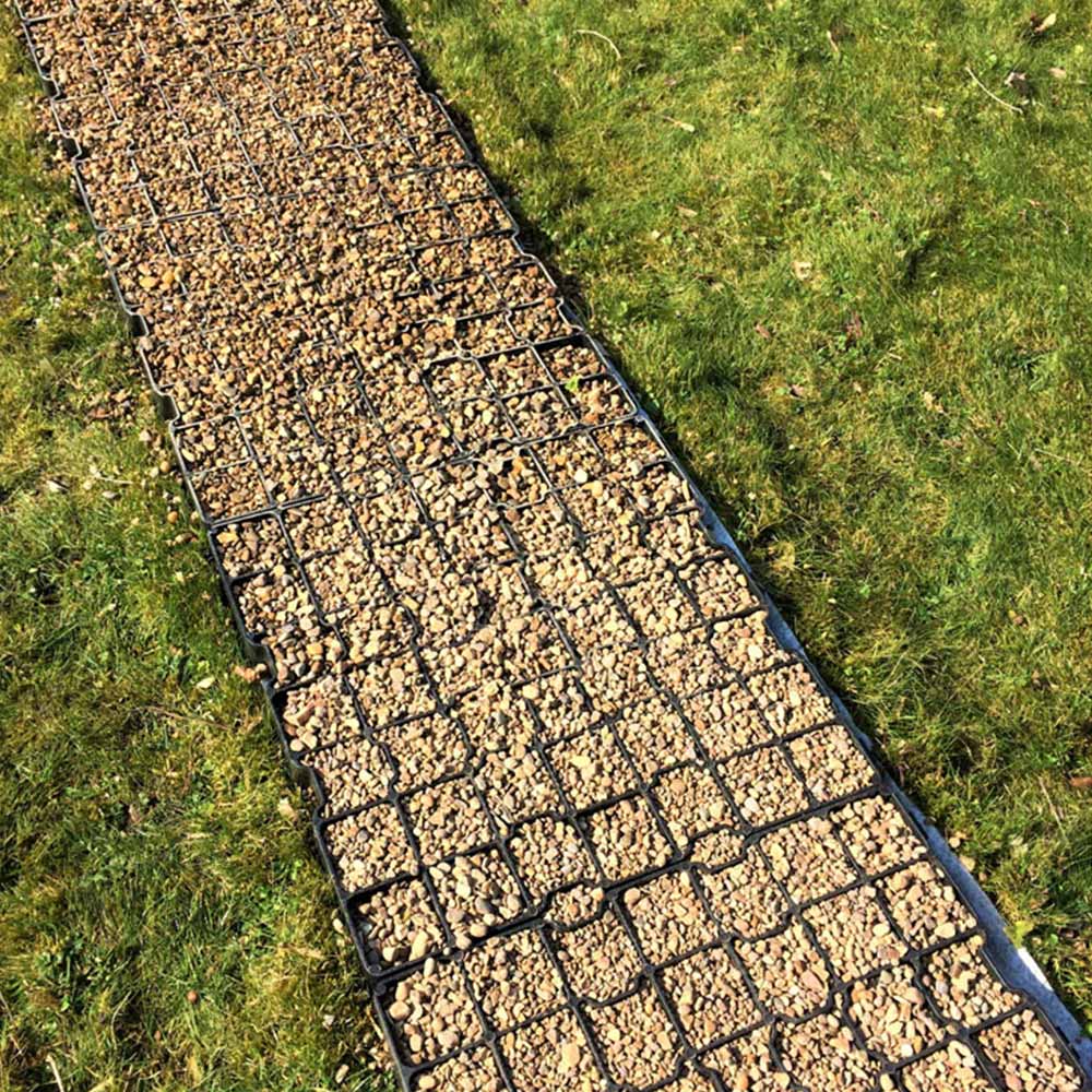 Create eco-friendly driveways and pathways with these porous pavers. A sustainable alternative to concrete, paving flags, or blocks, these pavers are crafted from tough recycled plastics and support over 60 tonnes each. Self-fastening connectors ensure easy installation. Their lightweight design simplifies placement, and the honeycomb structure promotes excellent drainage, reducing puddling. Fill the pavers with aggregate, gravel, soil, grass seed, or mulch. Ideal for covering areas up to 10 sqm.