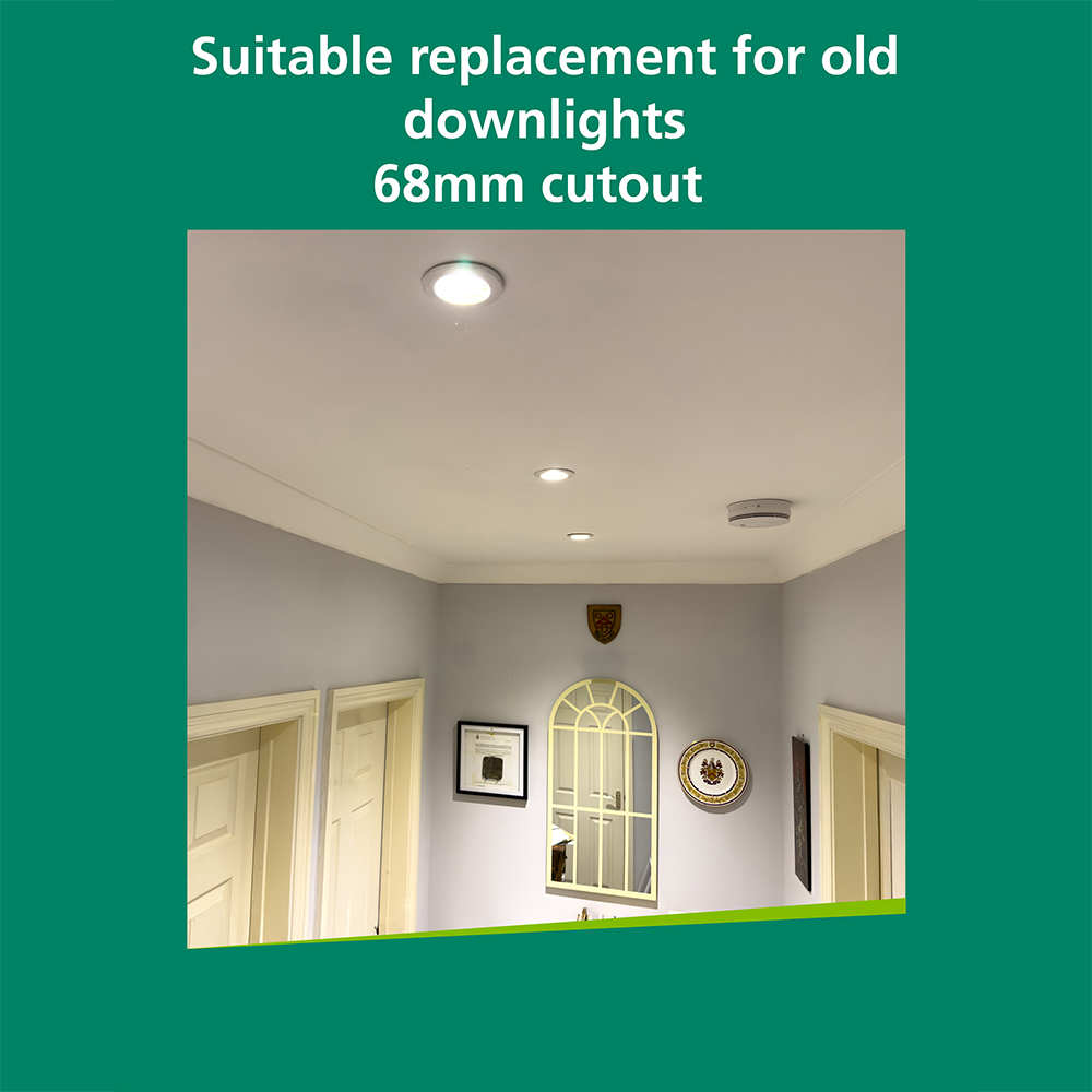 • Allows easy replacement of halogen spots with 68mm cut-out size