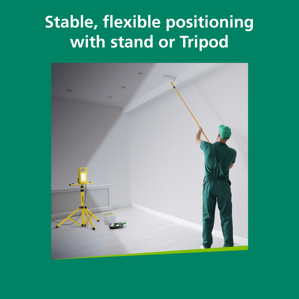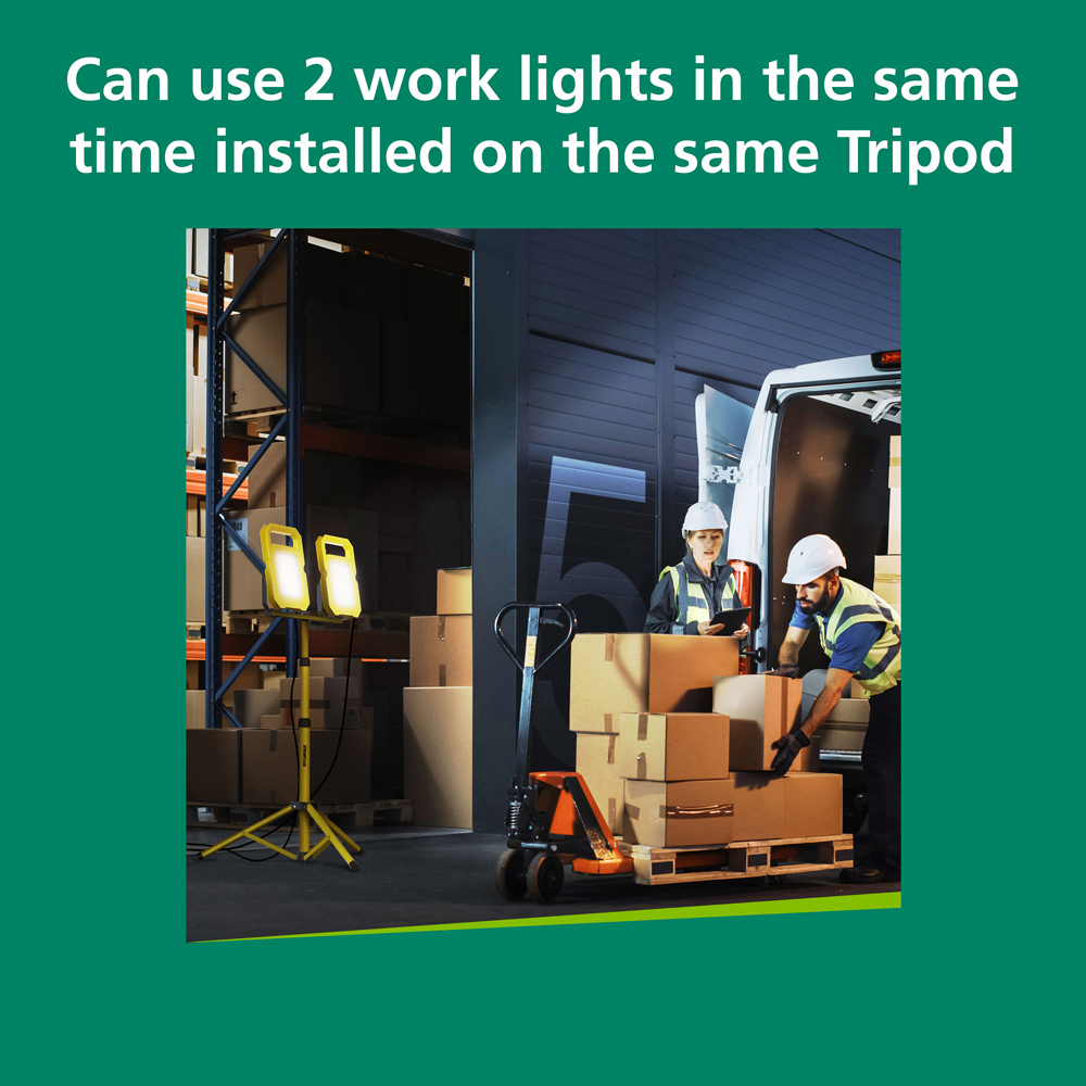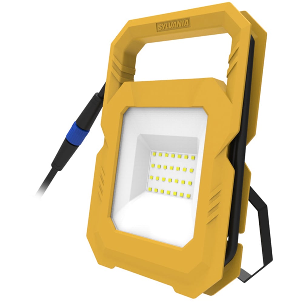 This Sylvania SylWork 30W Floodlight delivers neutral white light for both indoor and outdoor tasks. Its slim and robust design features a high-quality plastic body, offering flexible positioning to direct light exactly where it's needed. Emitting a cool white 4000K light with a system efficacy of 100lm/W, this LED work light provides bright, clear illumination. Lightweight and space-saving, it's easy to transport and store, with the added option to mount two lights on a single tripod for increased versatility. Backed by a three-year warranty and boasting a 30,000-hour lifetime, this floodlight offers dependable performance and longevity.