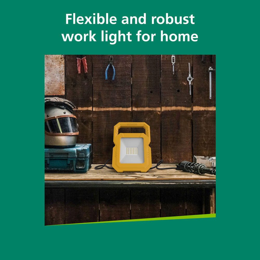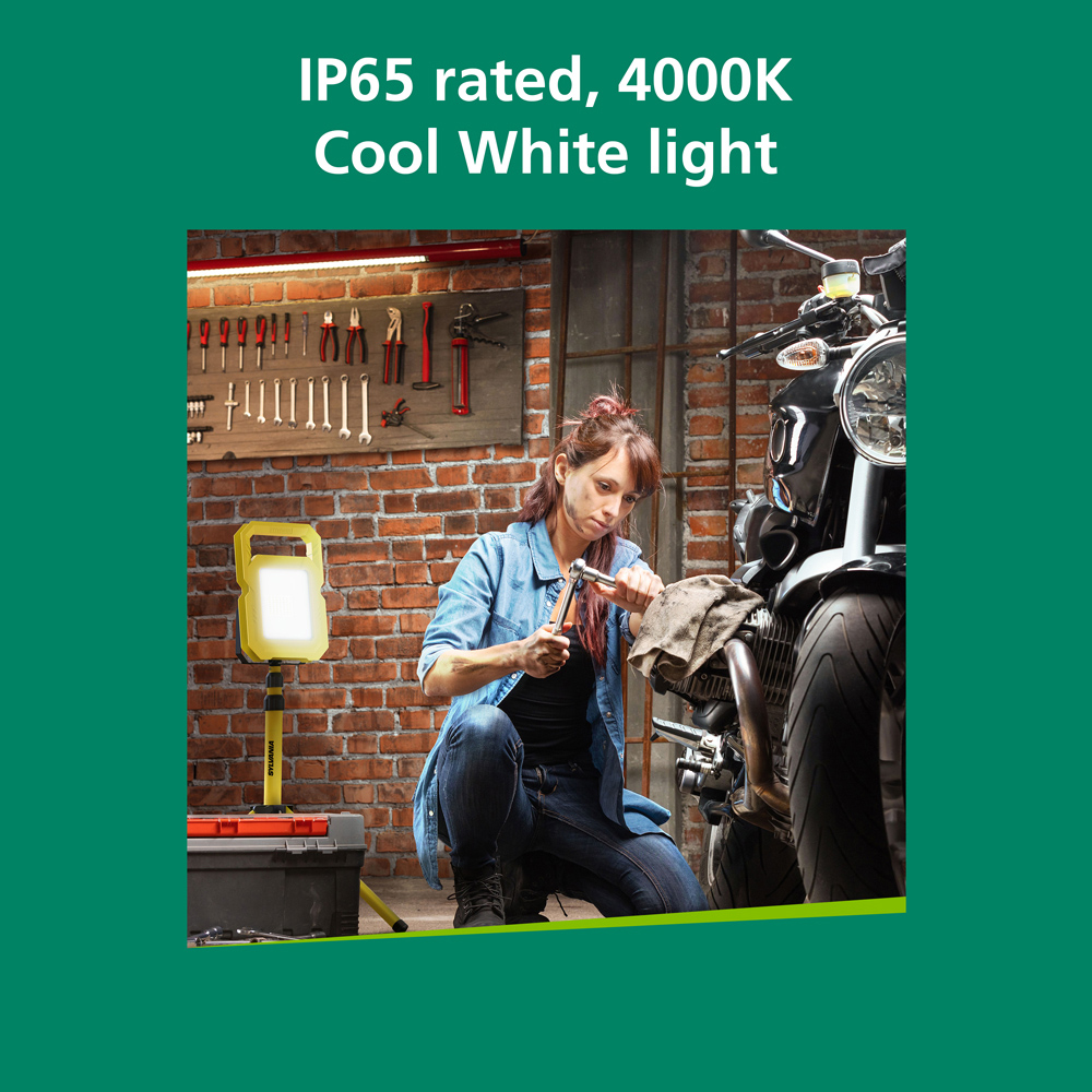 Illuminate any task with the Sylvania SylWork 45W Neutral White Floodlight. Offering a slim, stylish and robust design, this LED work light delivers bright and reliable illumination for both indoor and outdoor use. Encased in a high-quality plastic body, this floodlight provides flexible positioning options to meet diverse lighting needs.