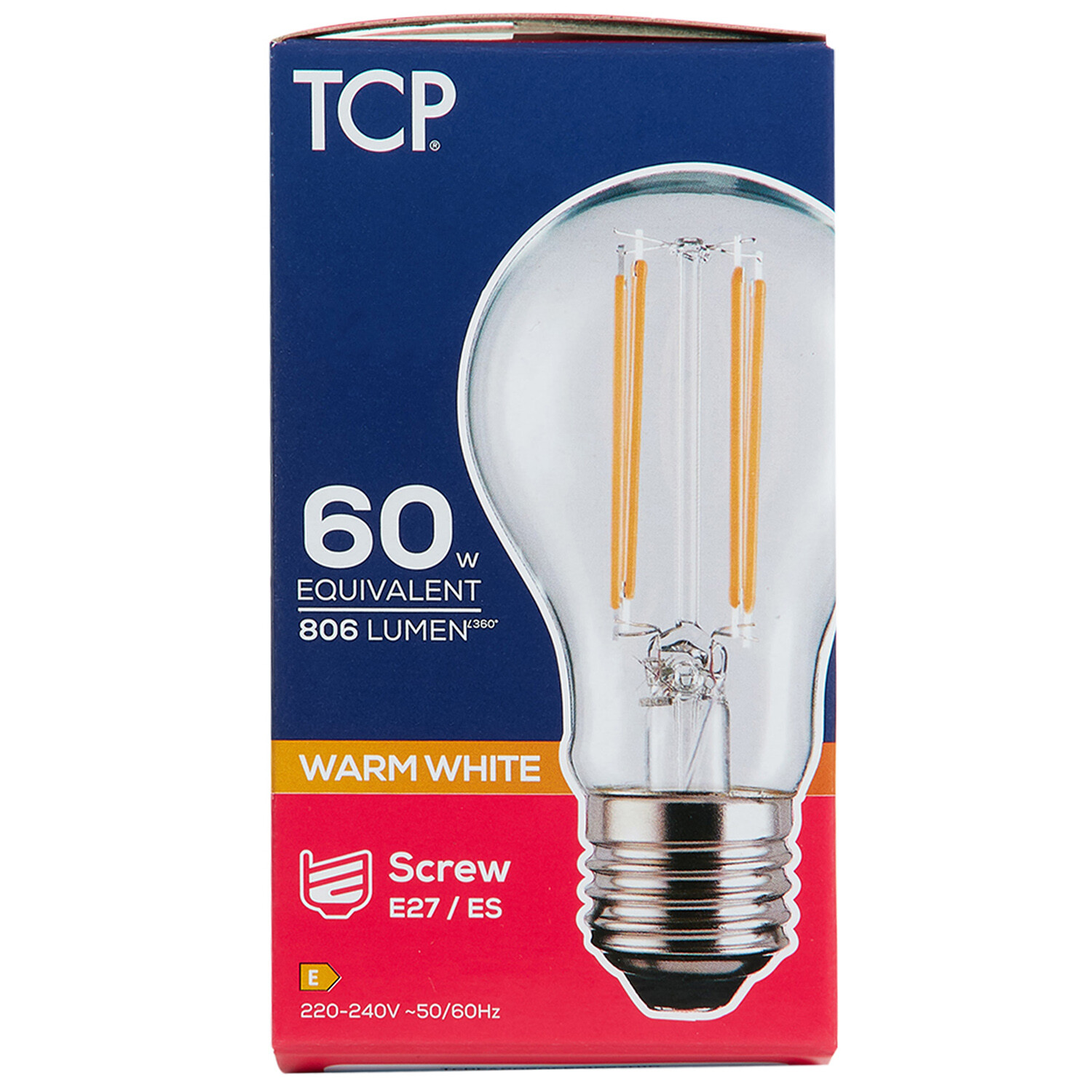 Illuminate your home with the TCP FIL Classic 806L E27 Warm White Bulb. This energy-efficient bulb provides long-lasting, warm white light, perfect for any room and décor. Enjoy significant energy savings while enhancing your home',s ambiance.
