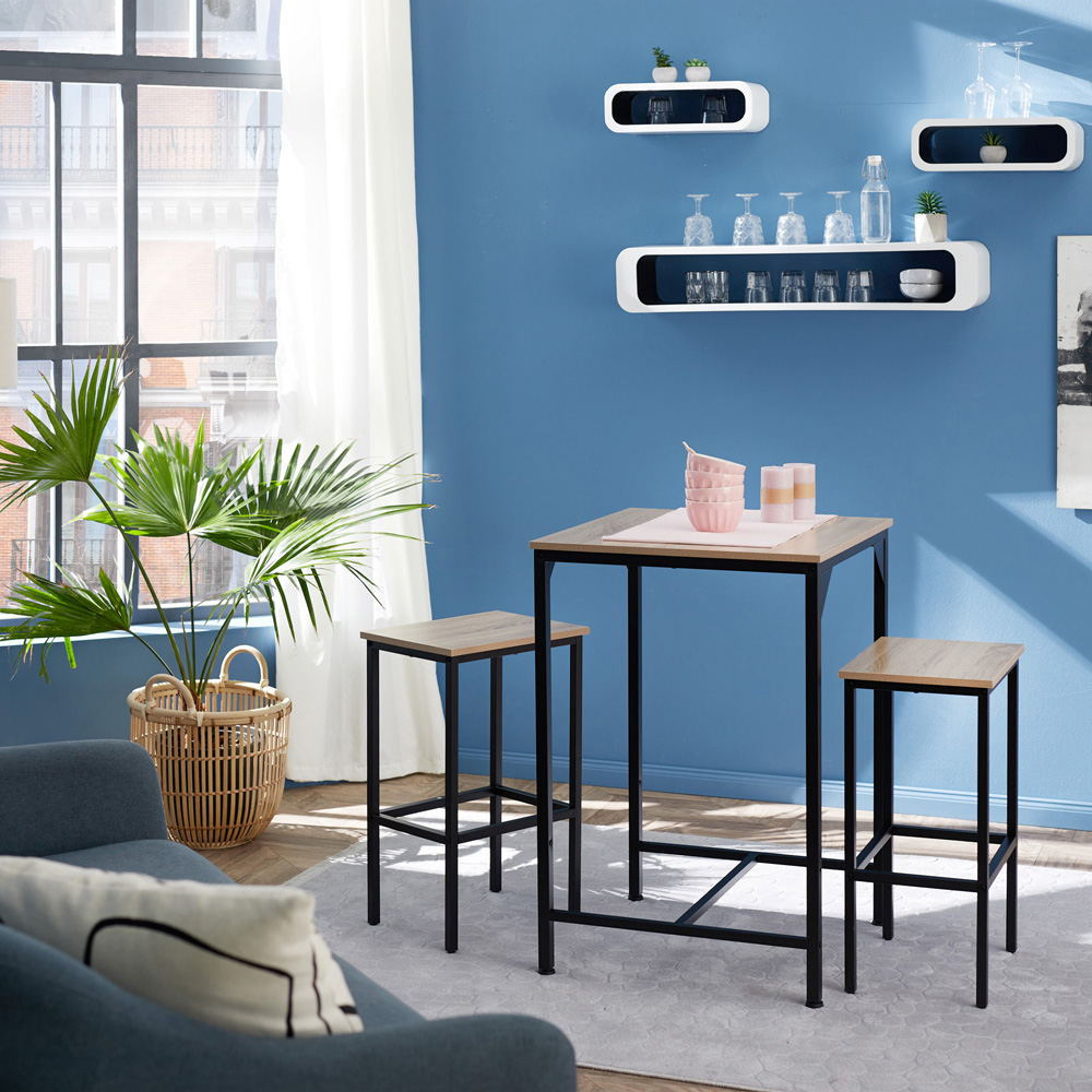 Looking for a stylish and practical addition to your dining space? The Inverness dining table and chairs from tectake is just the ticket. This three-piece bar table and stools set blends warm wood tones with cool steel, embodying a modern industrial aesthetic perfect for cocktail parties or everyday dining.
