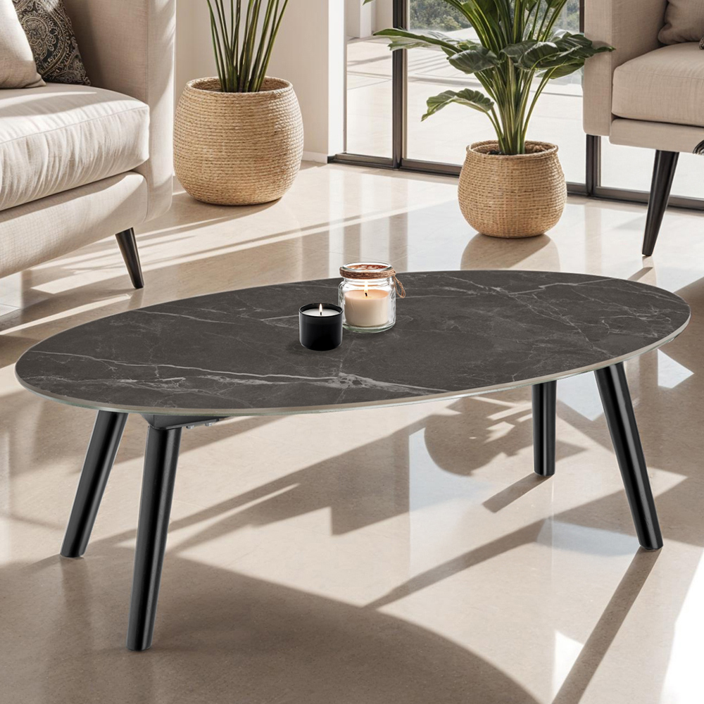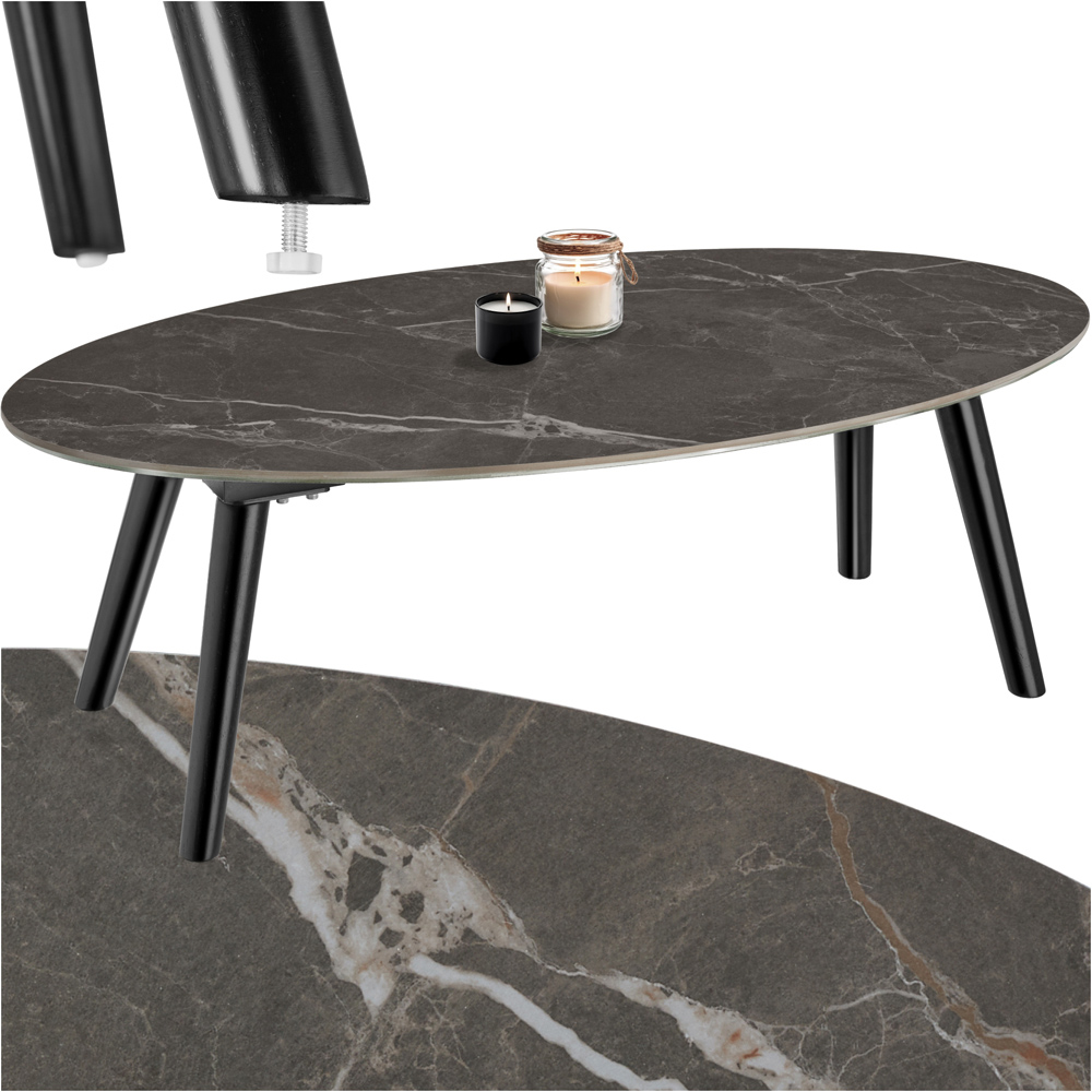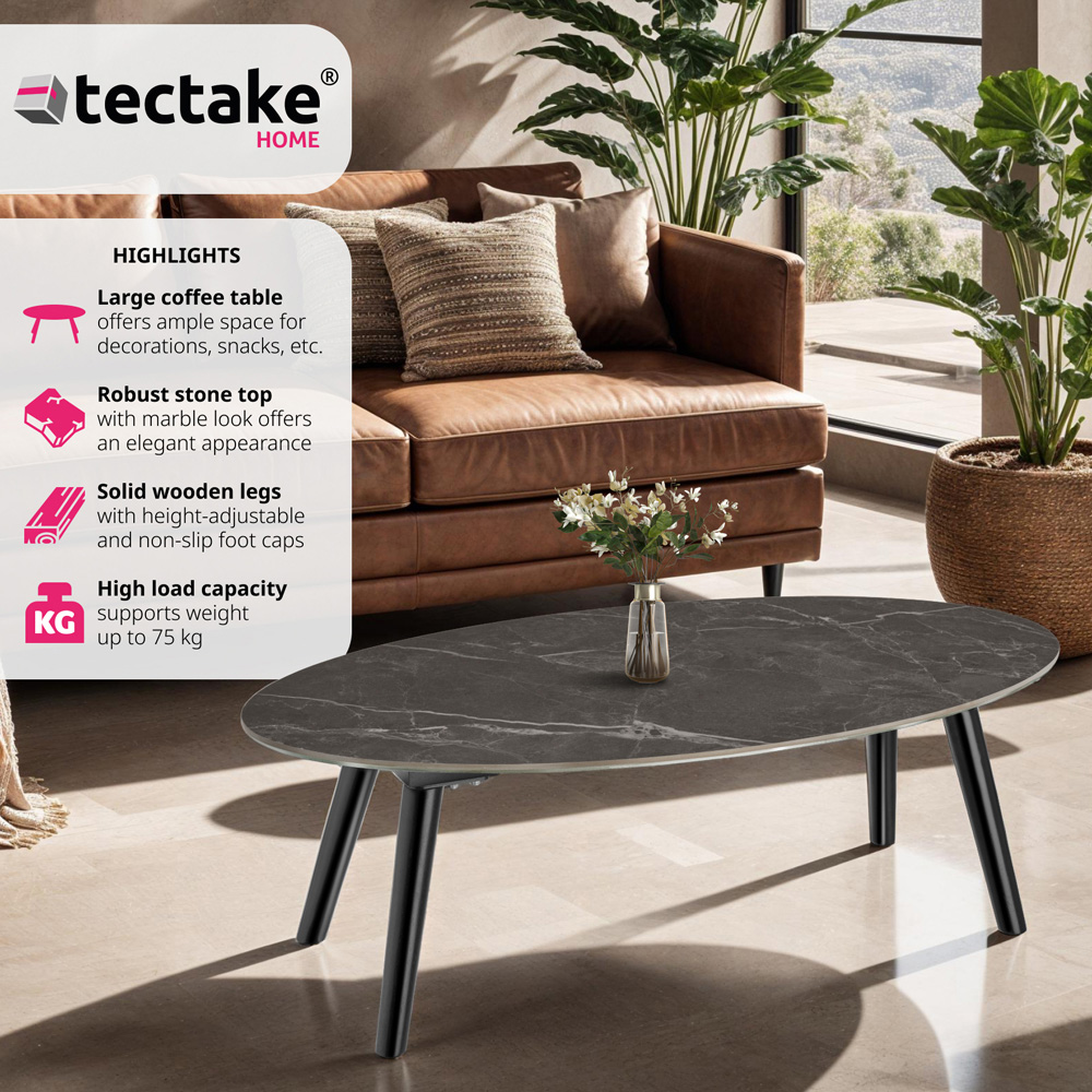 tectake Acerra Black Marble Effect Oval Coffee Table