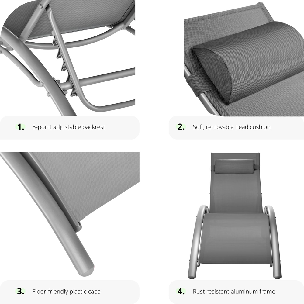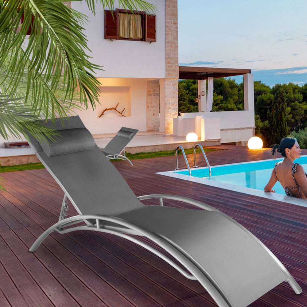 tectake Alina Set of 2 Grey Aluminium Sun Lounger with Head Cushion