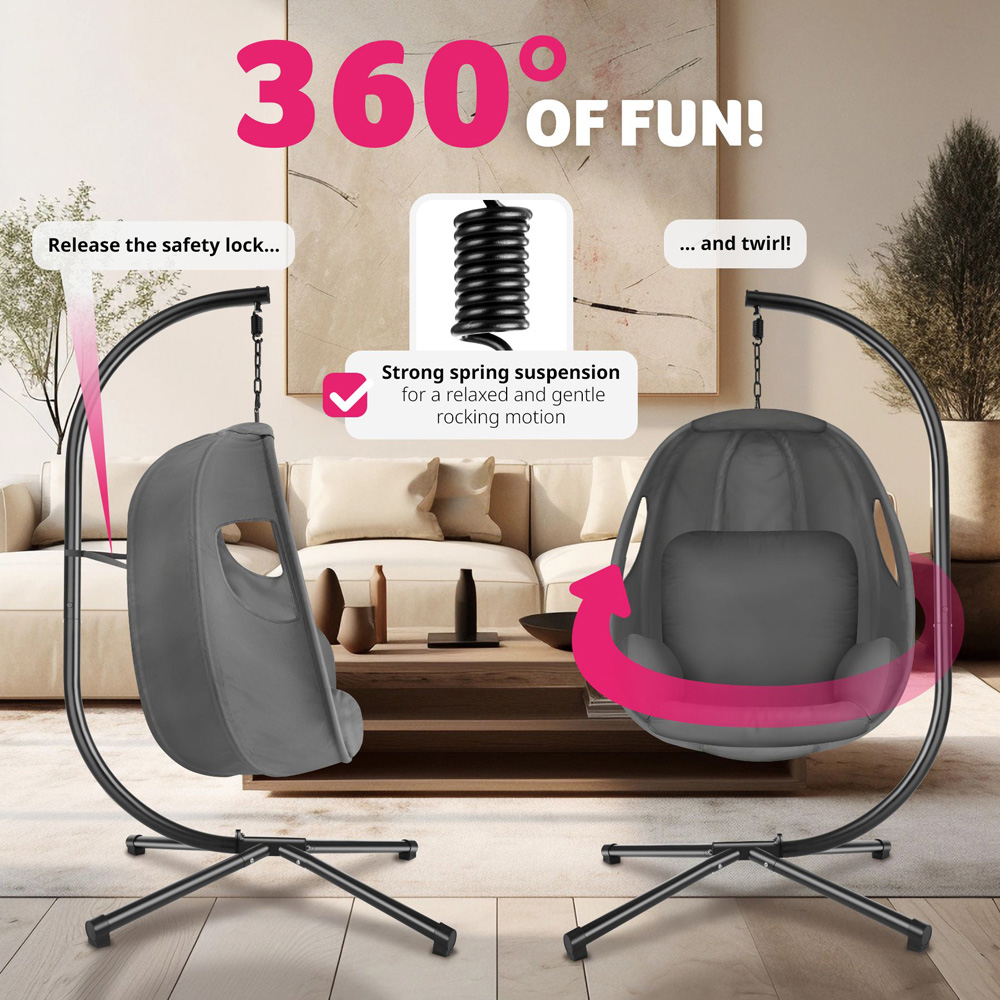 tectake Anika Anthracite Hanging Egg Chair with Cushion