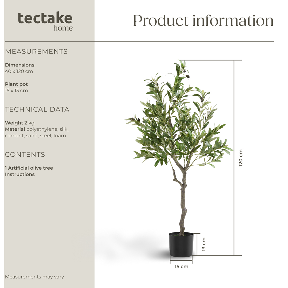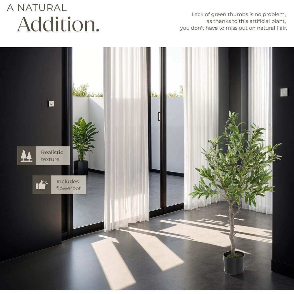 Introduce a touch of evergreen charm to your living space with this lifelike artificial olive tree. Standing at 120cm tall, it's expertly crafted to mirror the detailed beauty of a real olive tree, bringing a slice of the outdoors in, without the upkeep. The high-quality faux leaves and branches offer a realistic appearance that will fool the eye, while the sturdy plastic pot provides a stylish and stable base. Ideal for adding a low-maintenance flourish to any room in need of a little lift, this artificial tree requires no watering or pruning, ensuring lasting beauty and a tranquil atmosphere.