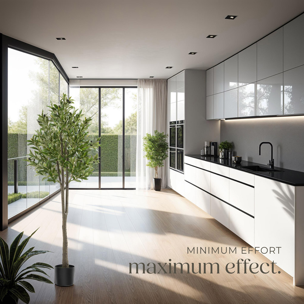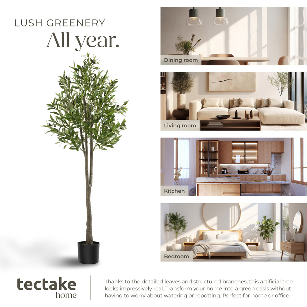 Seeking a touch of everlasting greenery? This lifelike artificial olive tree brings the charm of the Mediterranean indoors, standing at 150 cm tall. With meticulously crafted leaves and branches, this faux tree mirrors the beauty of a real olive tree with astonishing accuracy.