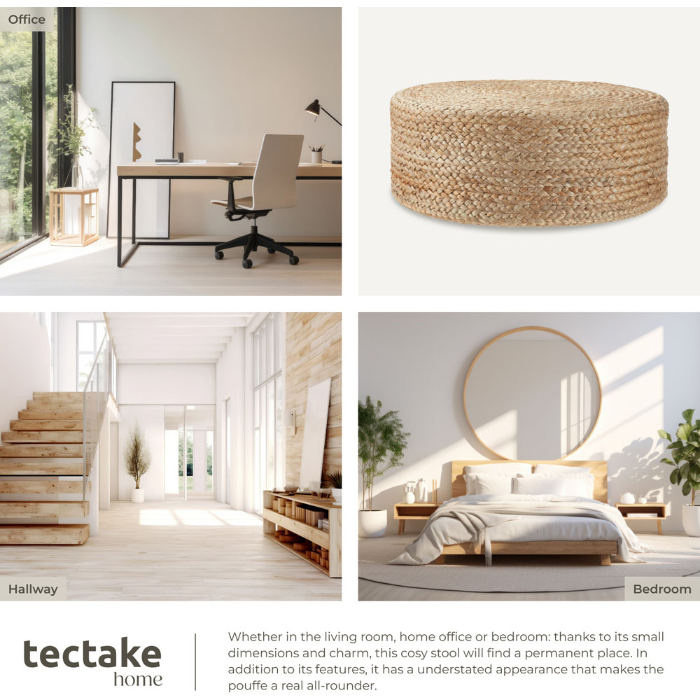 tectake Banno Natural Jute Boho Style Oval Footstool