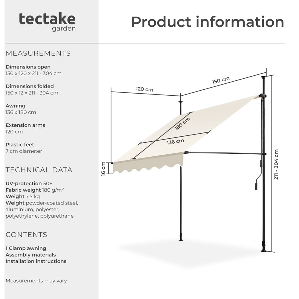 tectake Beige Manual Retractable Awning 1.5 x 1.8m