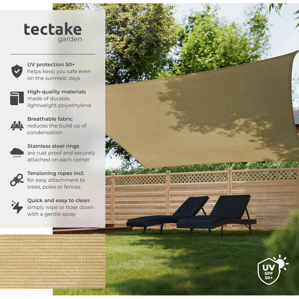tectake Beige Rectangular Sun Shade Sail 5 x 5m