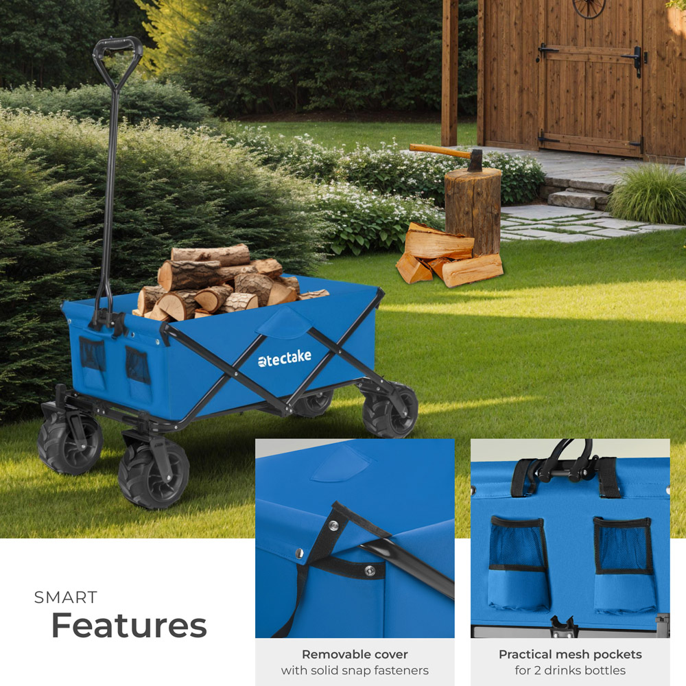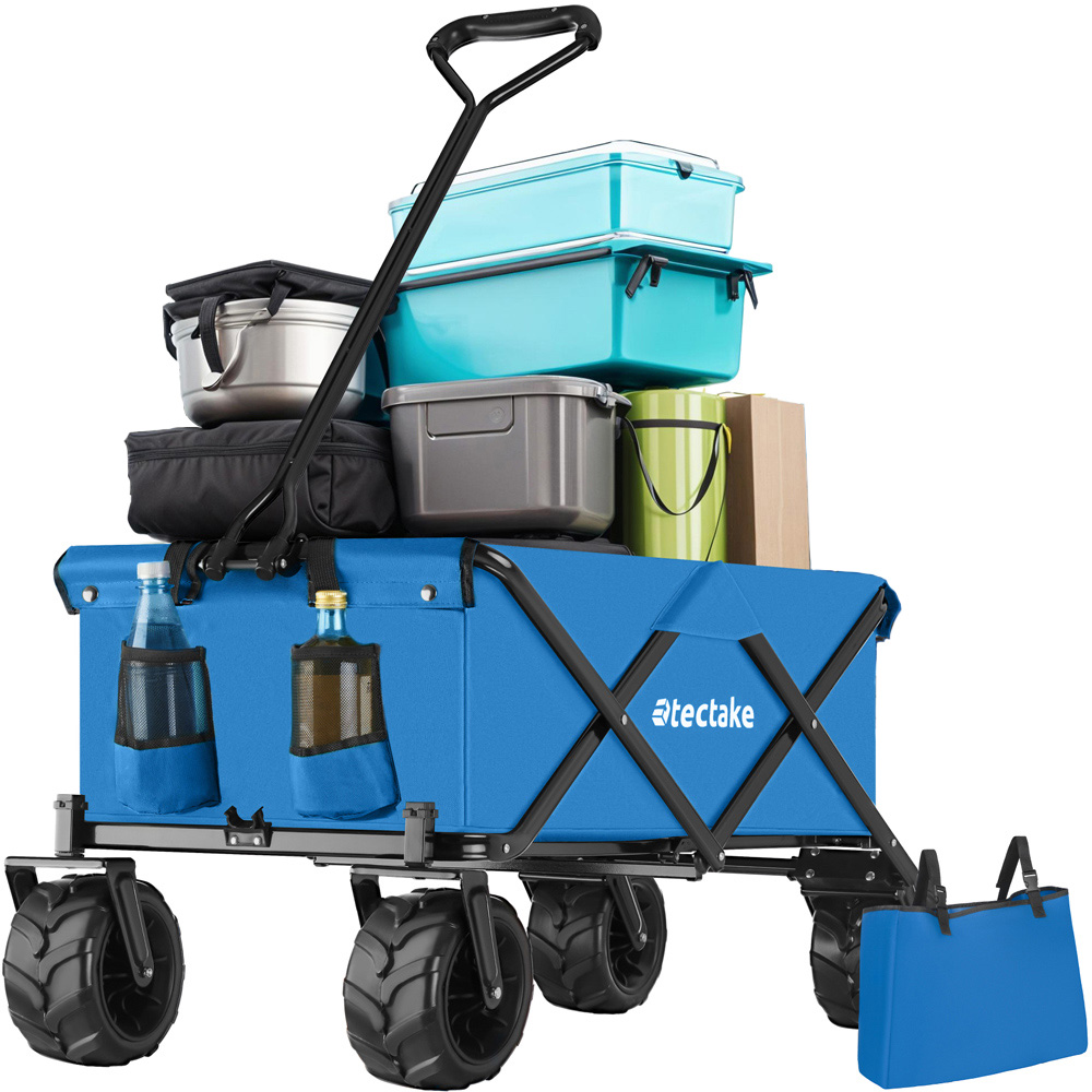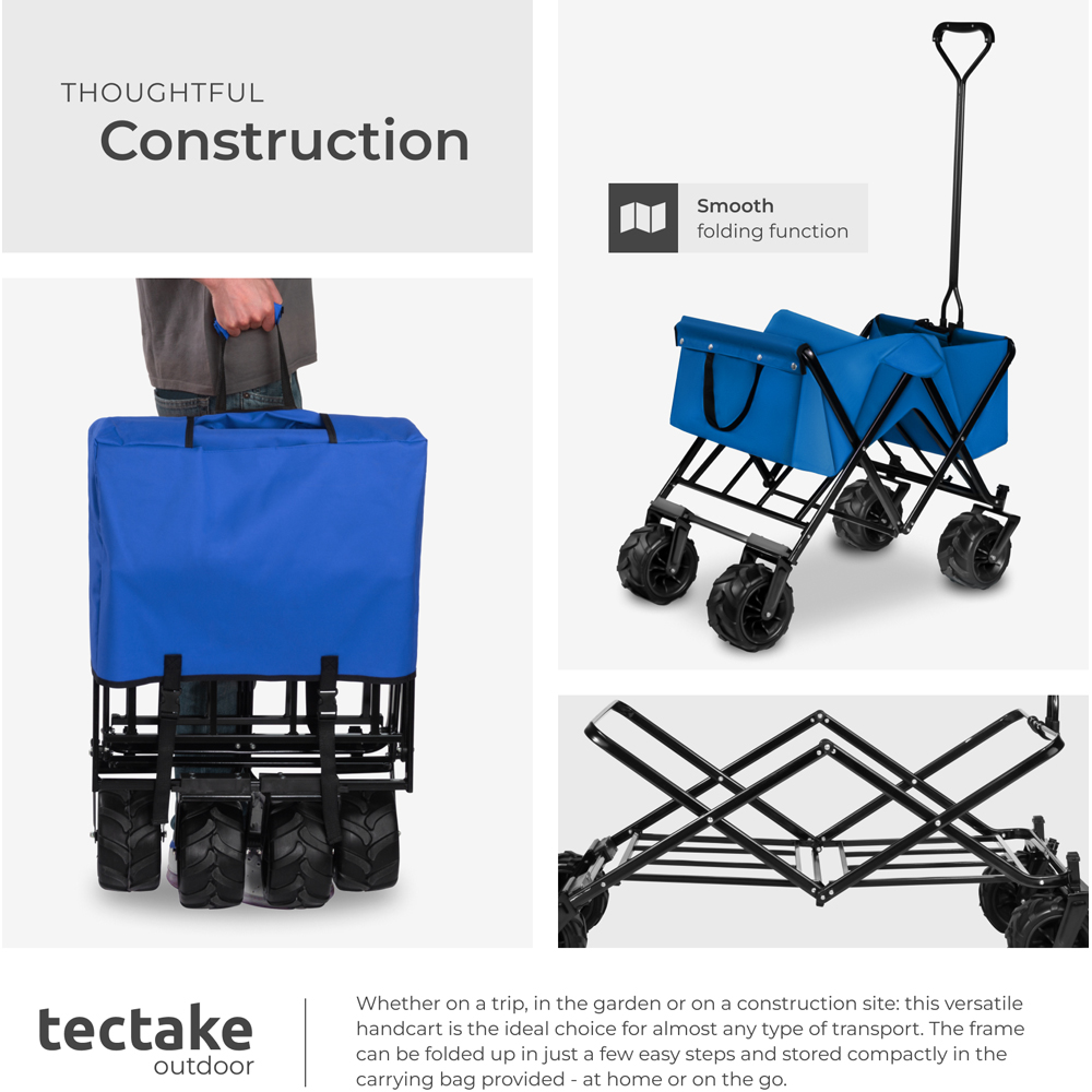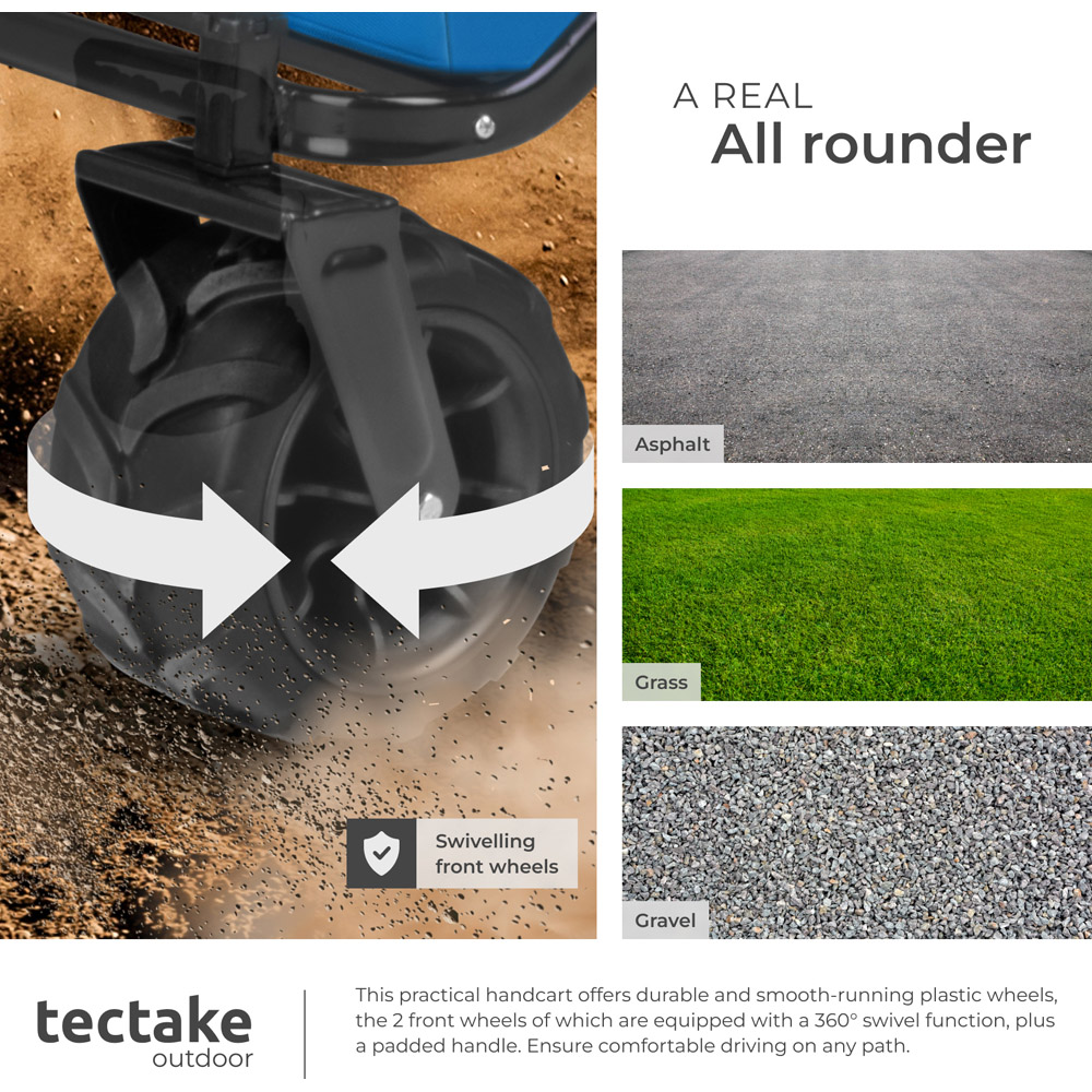 tectake Blue Foldable Garden Trolley with Wide Wheels 80kg