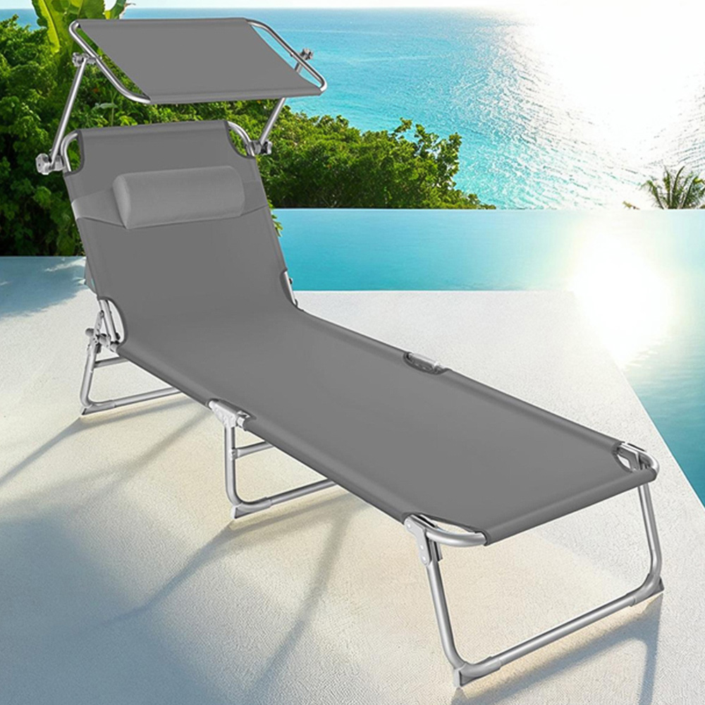 tectake Chloé Grey Foldable Sun Lounger with 4 Step Backrest and Adjustable Sunroof