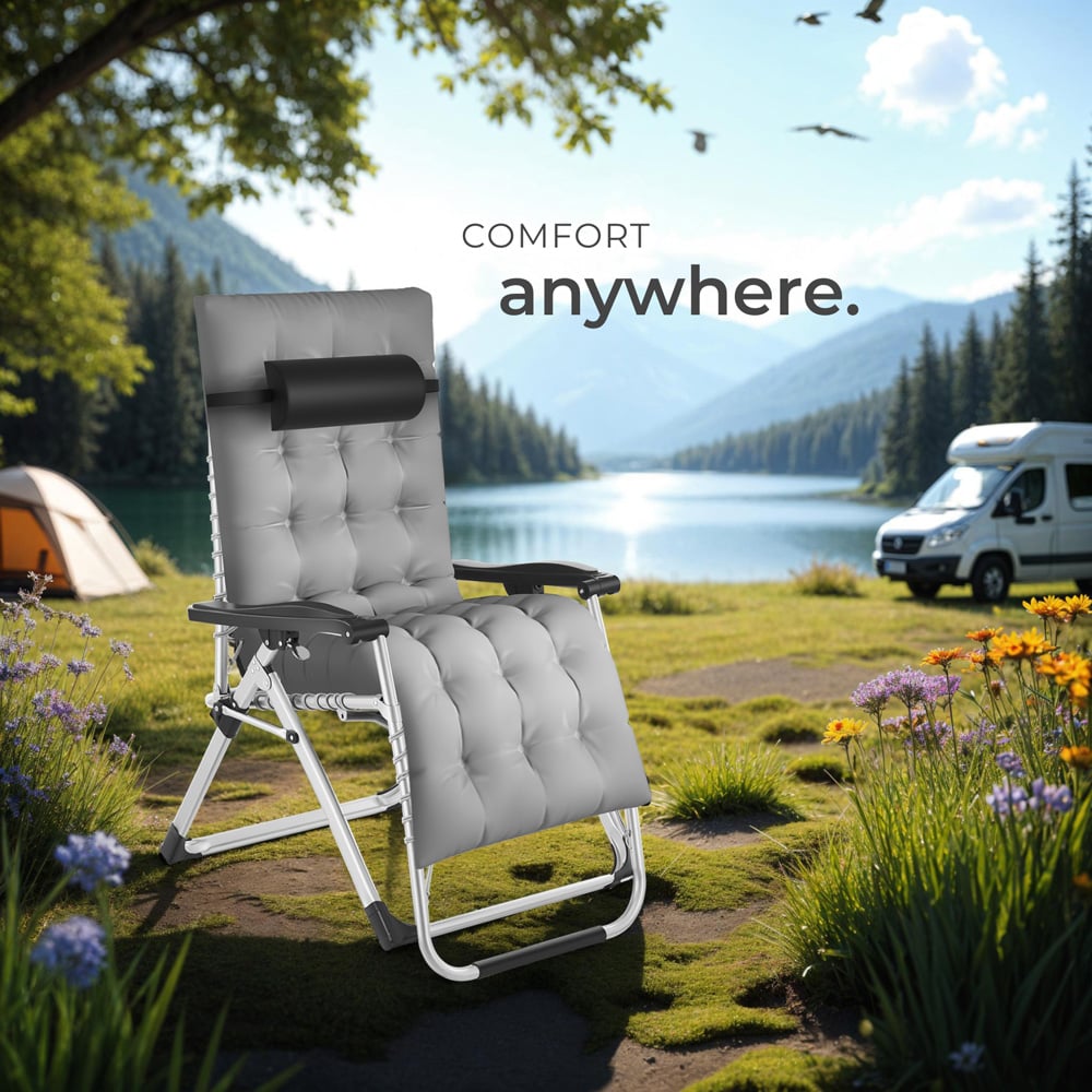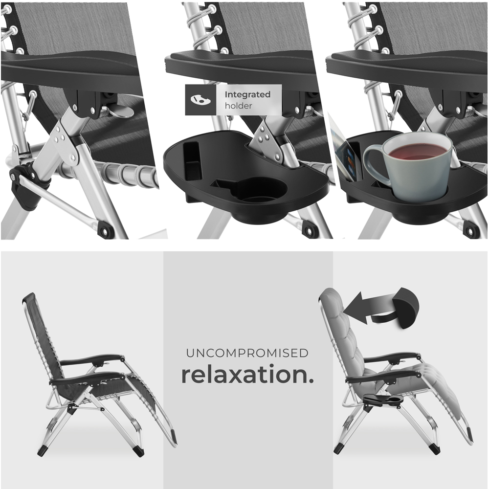 Lounge, relax, or stretch out on the Cloud sun lounger by tectake. This stylish, foldable lounger offers ultimate comfort with its removable headrest and thick, ultra-soft cushioning. Alternatively, relax directly on the breathable Textilene fabric. Find your perfect position with the infinitely adjustable backrest and footrest, from upright to a fully relieving zero-gravity experience. A practical side table, complete with recesses for your drink and smartphone, perfectly complements the sturdy design. Perfect for deeply relaxed summer days in your garden.