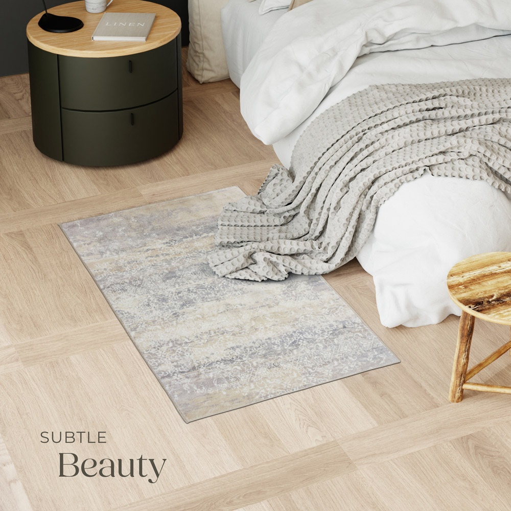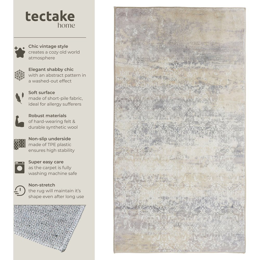 Bring a touch of modern elegance to your home with the tectake Dalia rug, sized at 110 x 60 x 0.6 cm. Featuring a subtle abstract pattern with washed-out black and grey highlights, this cuddly-soft rug is the perfect addition to any living room, bedroom, or hallway. Designed for comfort and practicality, its short-pile felt and synthetic wool construction offers a pleasant underfoot feel while effectively absorbing sound. The modern non-slip TPE plastic underside ensures the rug stays securely in place on smooth floors, even when vacuuming. Easy to care for and machine washable, this durable rug is ideal for busy homes and can be used in any room, from the kitchen to the living room.