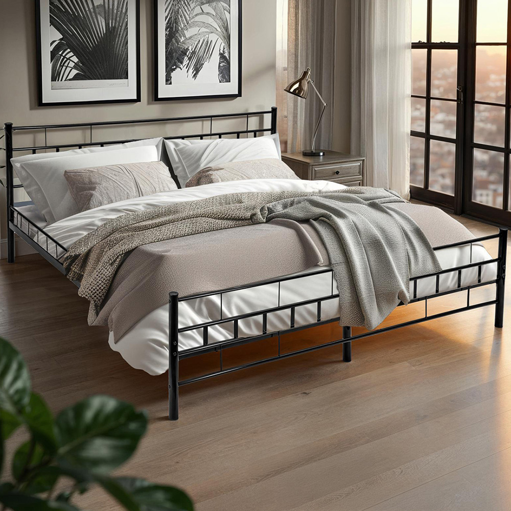 This tectake metal bed frame is a sturdy and adaptable solution for any bedroom. Crafted from robust steel, it boasts a visually pleasing head and foot section, seamlessly blending with diverse interior styles. The integrated slatted frame, constructed from durable poplar wood, provides reliable support. A powder-coated finish ensures the frame is anti-static, shock-resistant, and scratch-resistant. Furthermore, the bed features floor-friendly plastic feet.