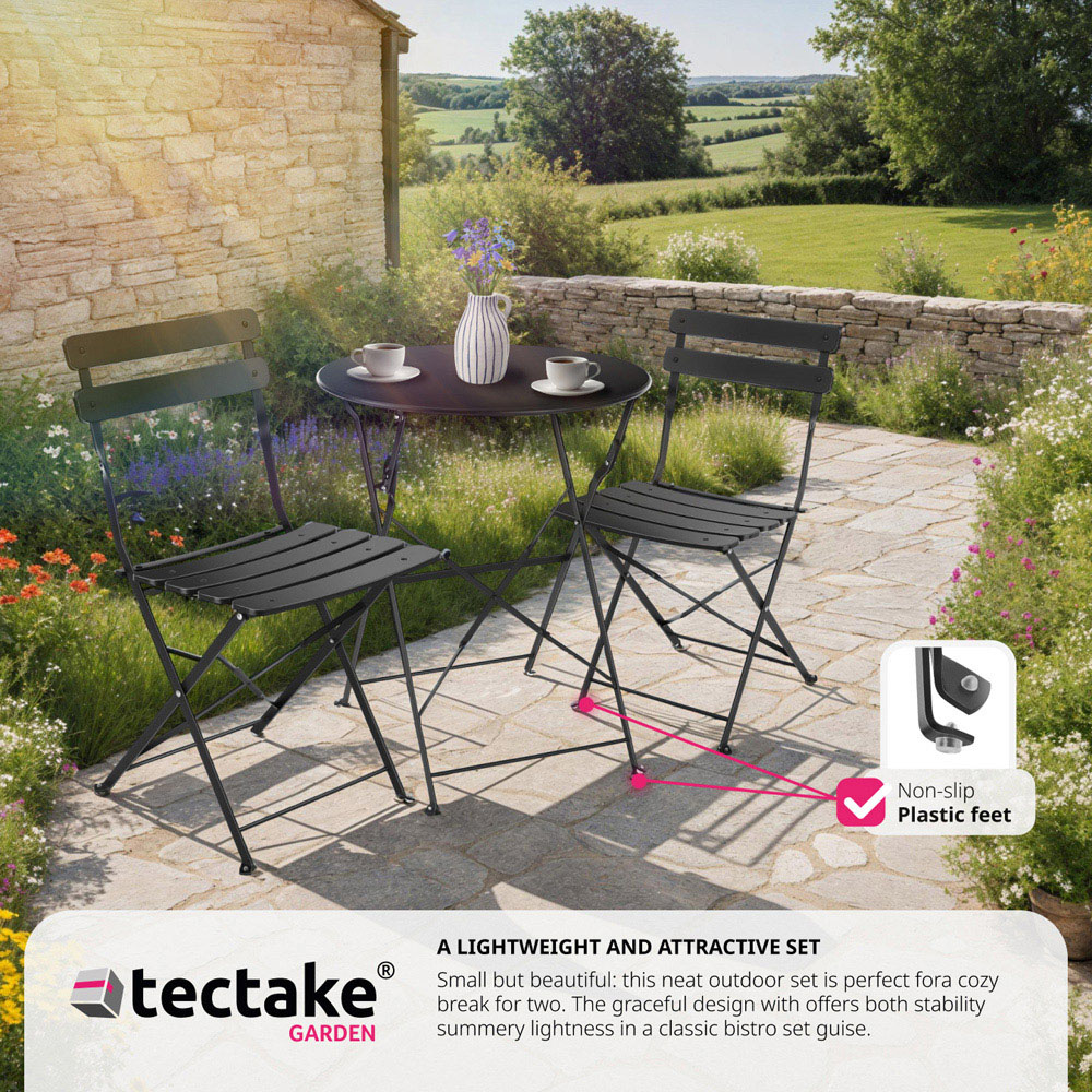 Easy to care for and simple to clean, this garden set's high resilience and durable materials ensure years of enjoyment. Whether you're enjoying a morning coffee or a relaxed dinner under the stars, the folding table and chairs offer the perfect blend of style and practicality for your home. Experience the quality and comfort of the Frieda bistro set by tectake and transform your outdoor area into an inviting, exclusive dining space.