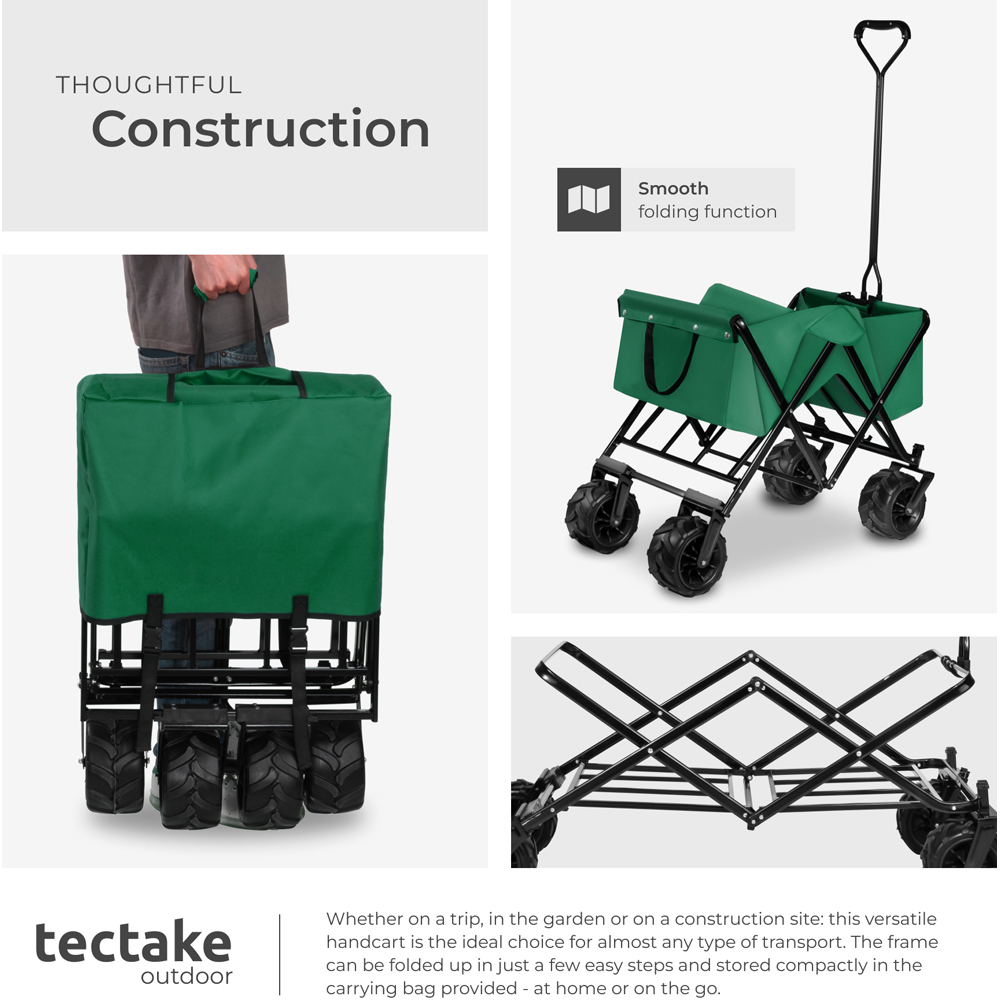 tectake Green Foldable Garden Trolley with Wide Wheels 80kg