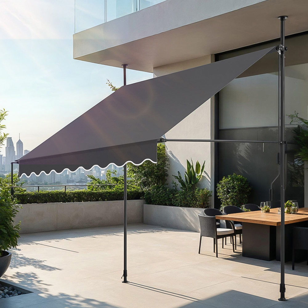 Maximise the potential of your patio, garden, or other outdoor area with this manual awning, offering protection from sun and showers. This durable awning features a smooth-running hand crank and is both UV and rain resistant. Built to last from powder-coated steel, aluminium, and polyester fabric, this home awning is easily installed with a simple clamp system, negating the need to drill into exterior walls. Enjoy the flexibility of this retractable patio canopy, allowing you to effortlessly switch between sun and shade. Perfect for fitting above a patio door, window, or as a roof extension, the adjustable design allows you to create the ideal shaded area. This easy-to-install awning brings both style and practicality to your outdoor space. Shop now for a versatile awning that brings comfort and protection.