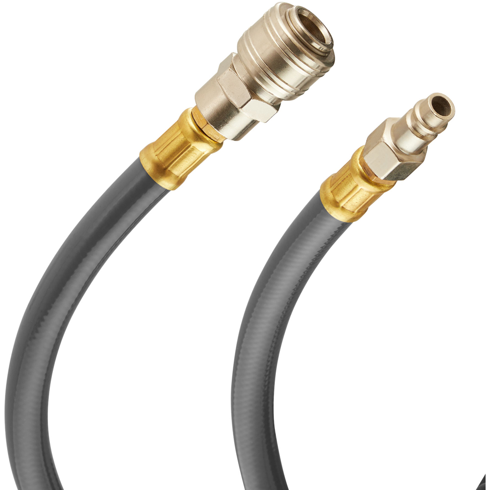 Keep your workspace organised and efficient with our Compressed Air Hose and Reel, equipped with a quarter-inch quick coupling for swift, seamless operation. Perfect for home workshops, sheds, or garages, this device ensures your hose is always neatly stored and ready for action. The robust hose extends effortlessly to your desired length and retracts independently with a gentle tug, thanks to its rapid coupling mechanism. Its tough plastic housing protects it from the elements, while the 180° rotatable, removable wall mount prevents kinks during use. Pre-assembled and ready to go, this grey air hose reel is a practical addition to any workspace.