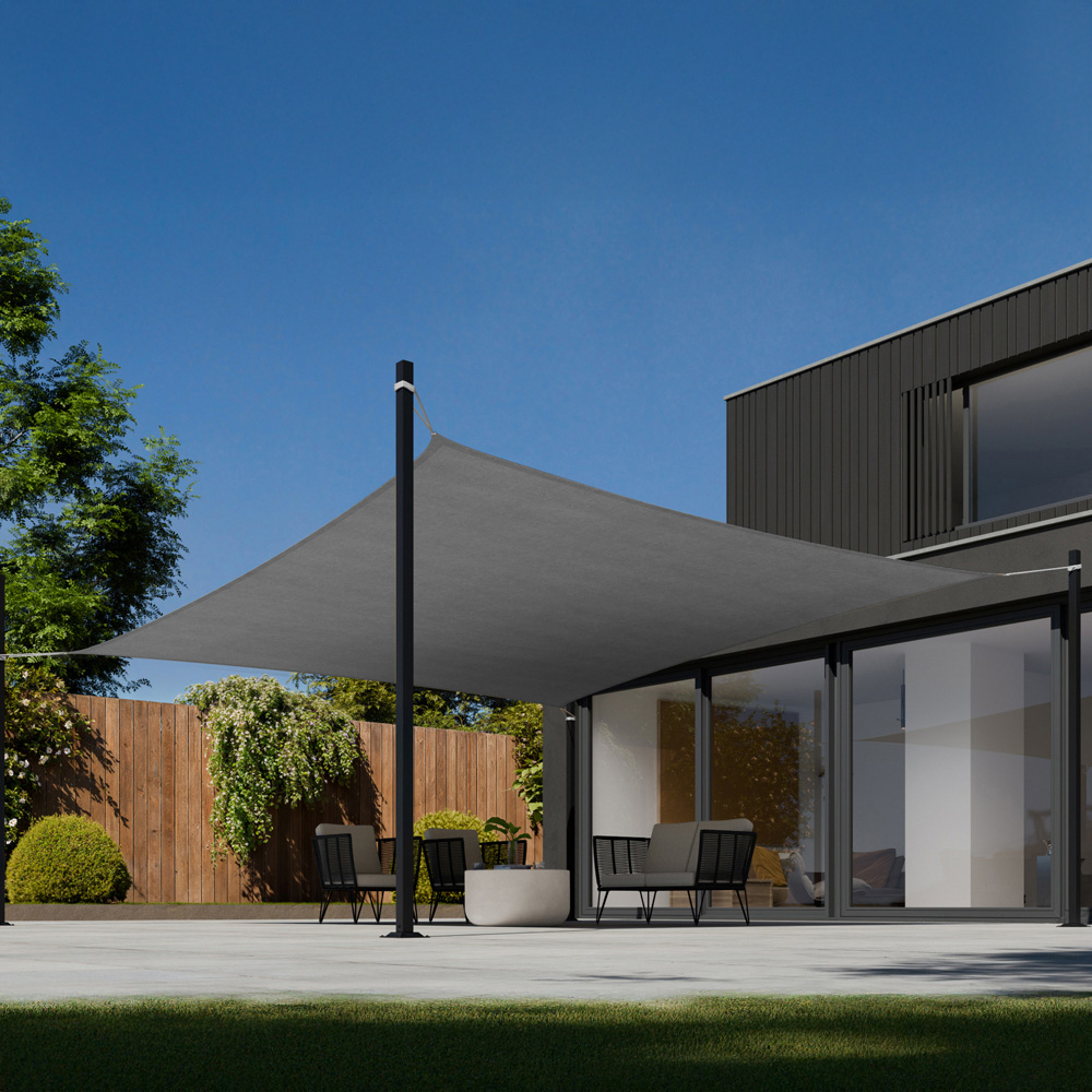 Create a shady retreat in your garden, terrace or balcony with this versatile sun shade sail from tectake. Perfect for home use, it's equally at home by the pool, on camping trips, or at outdoor events such as festivals and open-air events. This shade sail doubles as an effective privacy screen, shielding children in sandboxes from excessive sun exposure. Offering flexible attachment options and a high UV protection of 50+, it's made from durable, breathable knitted 100% polyethene fabric for optimal heat and moisture exchange. Cleaning is simple – just rinse with a garden hose. The concave design features stainless steel rings at each corner for secure attachment using the included tensioning ropes. This tectake sun shade sail is ideal for providing shade in any outdoor space.