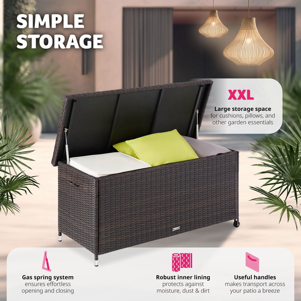tectake Kiruna Rattan Brown Garden Storage Box 120 x 55cm