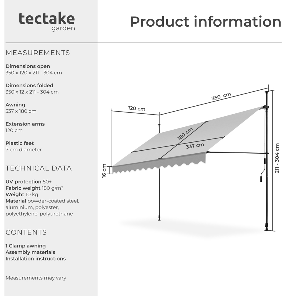 tectake Light Grey Manual Retractable Awning 3.5 x 1.8m