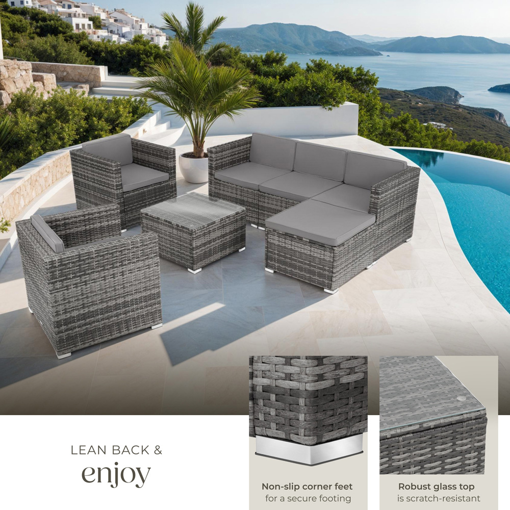Transform your garden into a stylish retreat with the Rattan Garden Furniture Lignano Set with Armchair. Designed for both comfort and durability, this versatile set is a superb addition to any outdoor space. The fine, UV-resistant Polyrattan weave and robust, powder-coated steel frame ensure longevity and aesthetic appeal, making it ideal for relaxing or entertaining.
