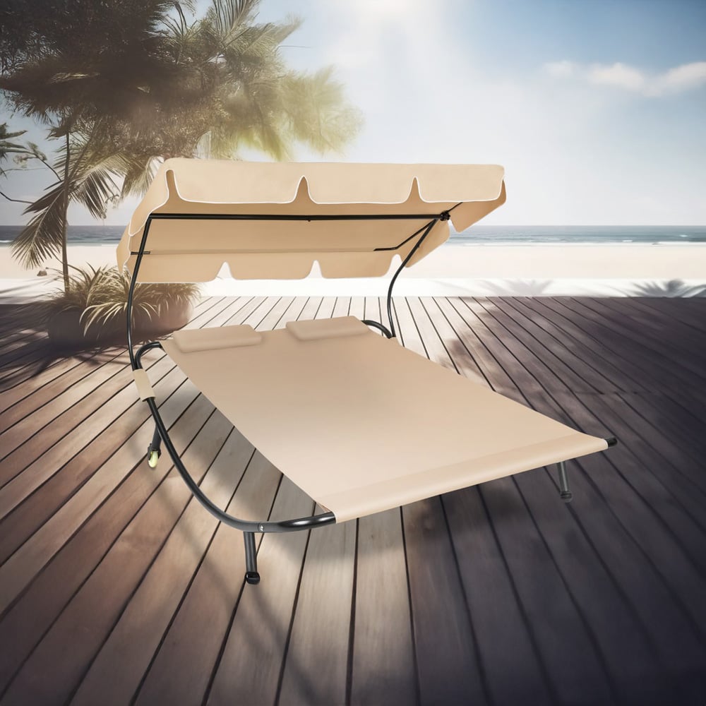 tectake Livorno 2 Person Black and Beige Sun Lounger with Sunshade