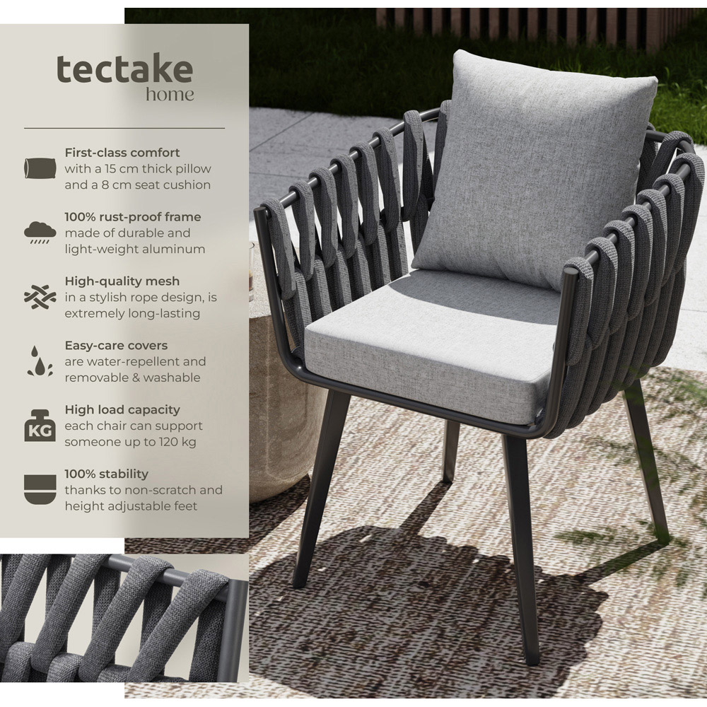 tectake Lugano Anthracite Aluminium Frame Rope Lounge Chair