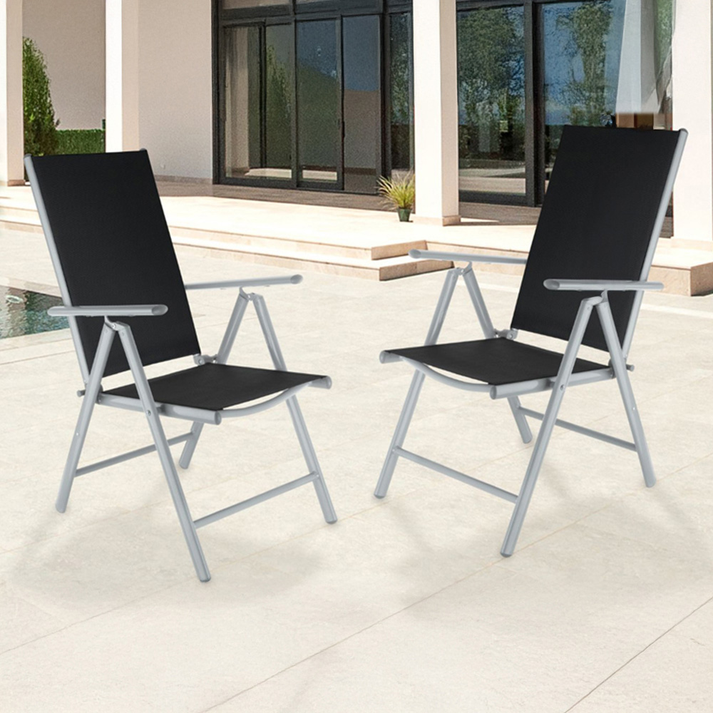 tectake Marilena Set of 2 Silver Garden Chair with Adjustable Backrest