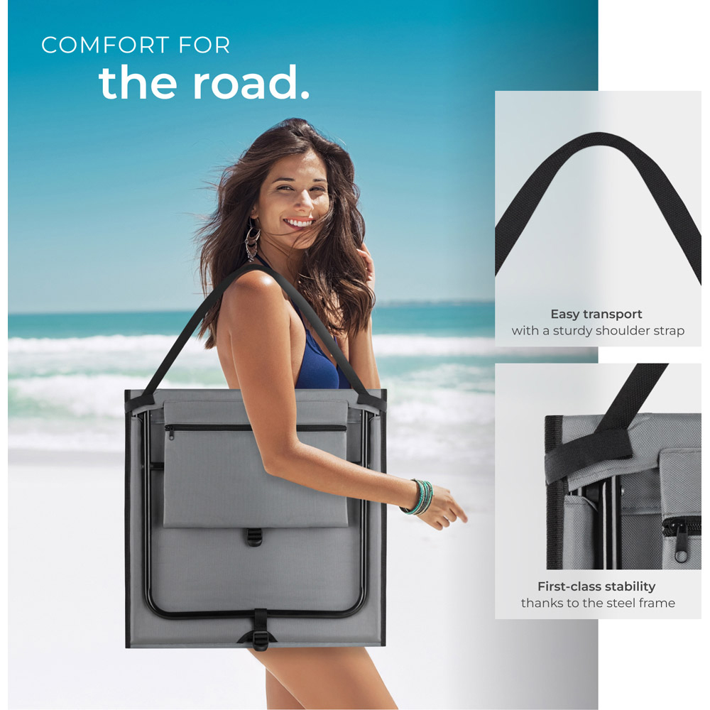 Discover the perfect blend of comfort and convenience with this 2-piece minimalist sun lounger set. Its ultra-light frame and clever folding mechanism, complete with an integrated carrying strap, ensure that you can take your relaxation on the go with ease. When the lounger is not in use, it folds away effortlessly, making storage a breeze.