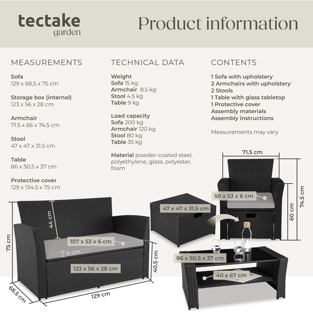 The thoughtfully designed sofa includes a spacious storage compartment beneath the seating area, perfect for stashing cushions or other garden accessories, keeping your outdoor space tidy and organised without sacrificing style or comfort.