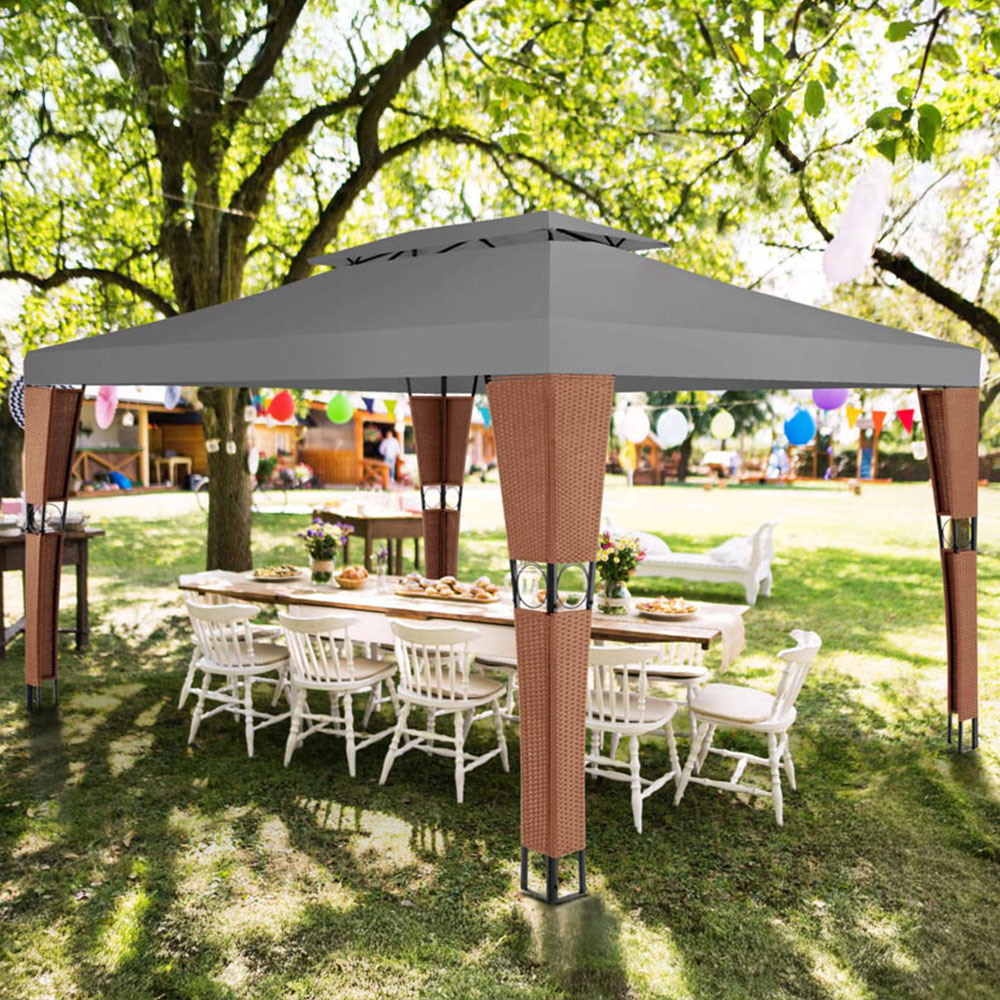 tectake Mona Brown and Anthracite Double Roof System Gazebo 4 x 3m