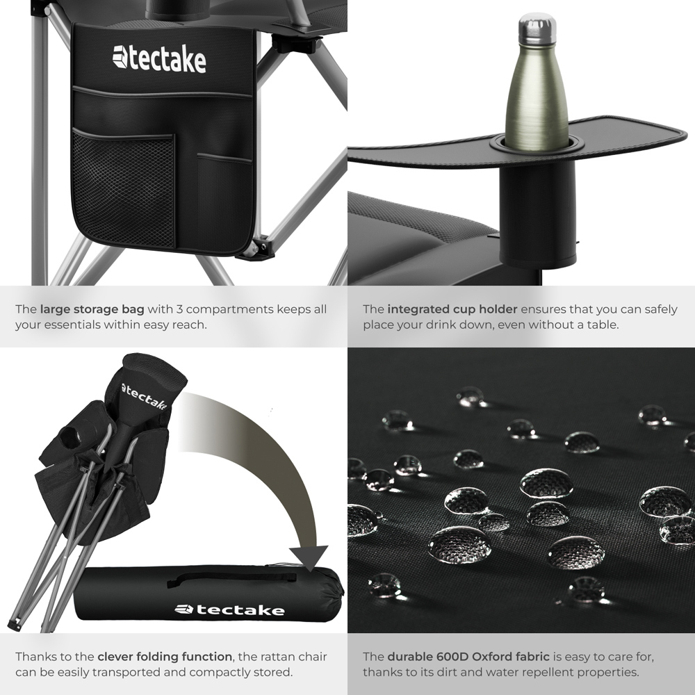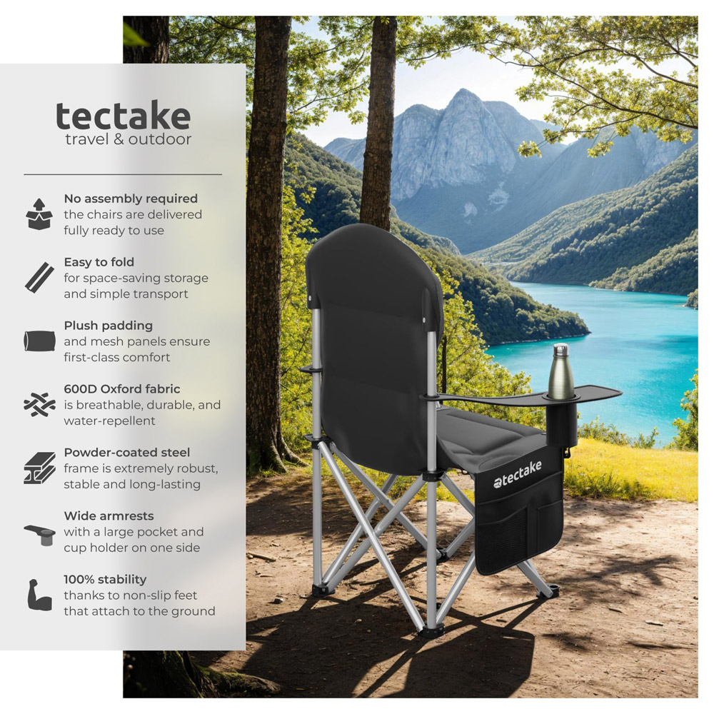 A handy hook on the right armrest allows you to keep bags and accessories within easy reach. Whether you're having an outdoor adventure, camping, attending festivals, or enjoying a motor home holiday, these pre-assembled, fold-away chairs provide maximum comfort with minimal fuss.