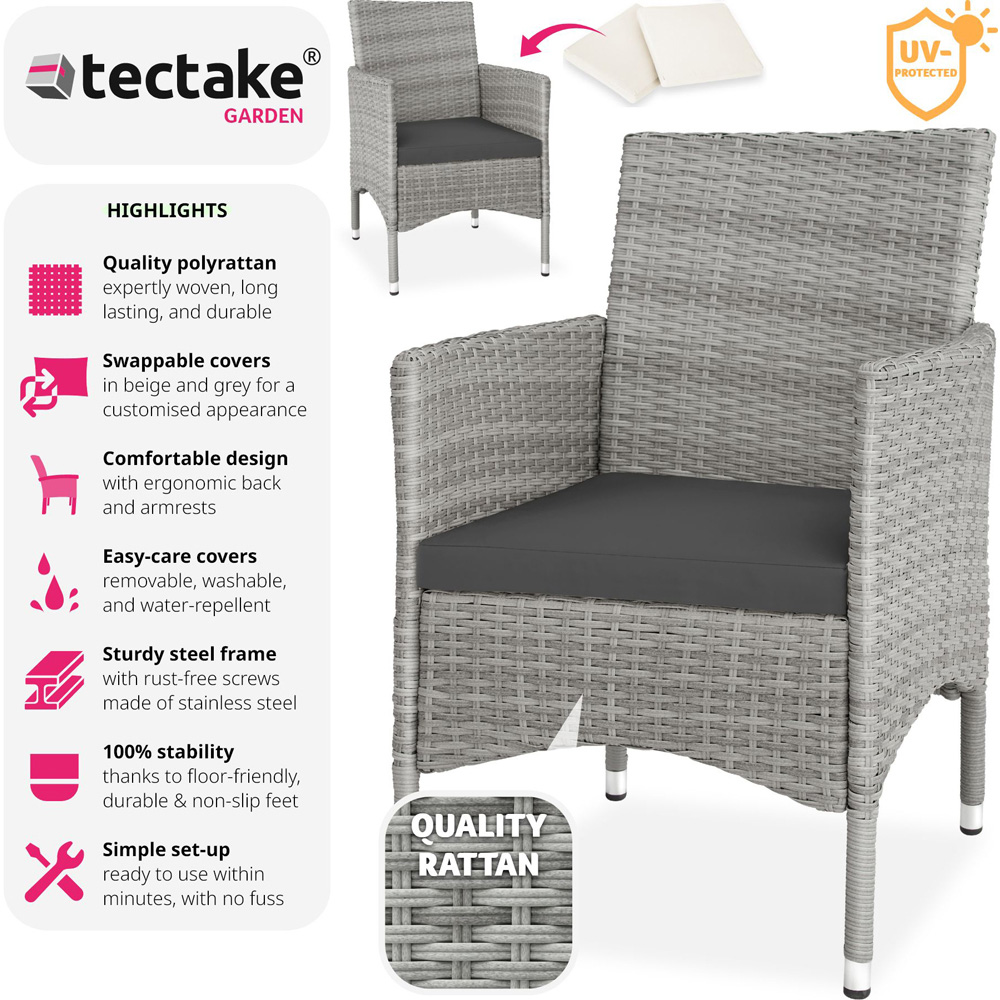 Elevate your outdoor living space with the Nantes Garden Chair Set, a duo of light grey and cream polyrattan dining chairs designed for both style and resilience. Perfect for enhancing a balcony or expanding your garden seating, these versatile chairs blend seamlessly with any outdoor décor.