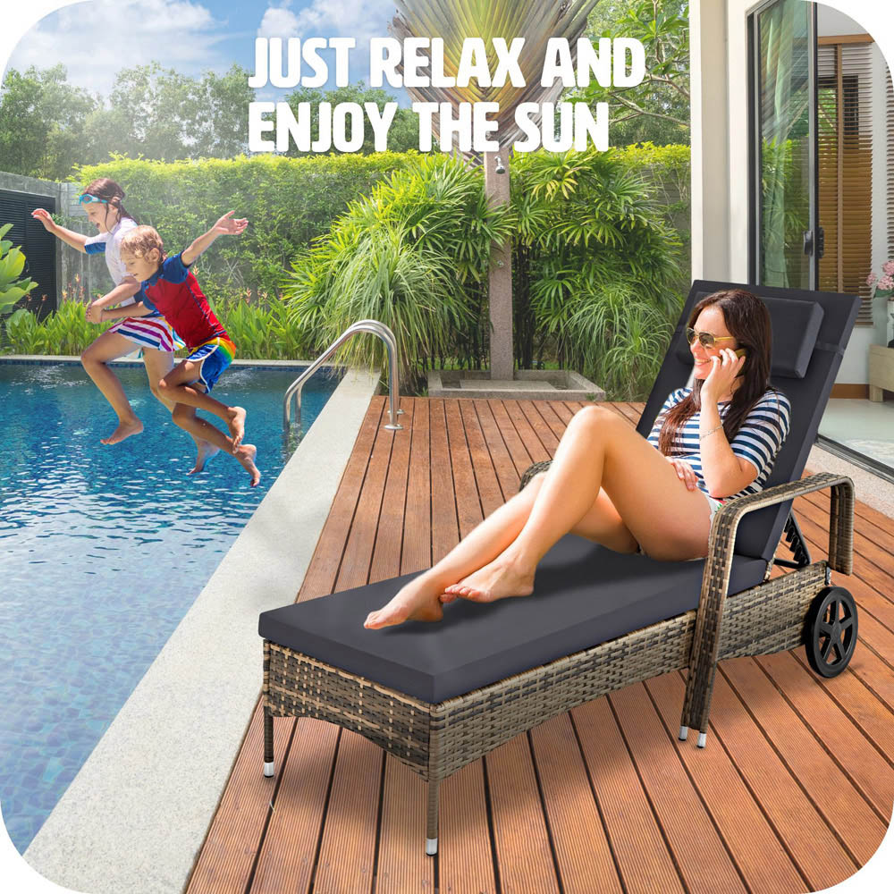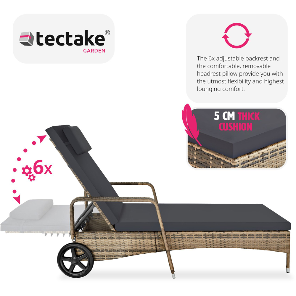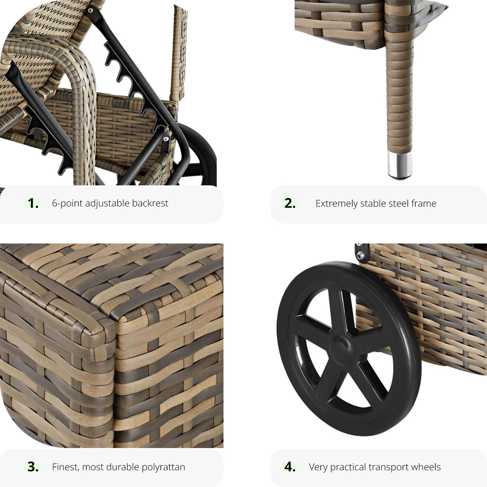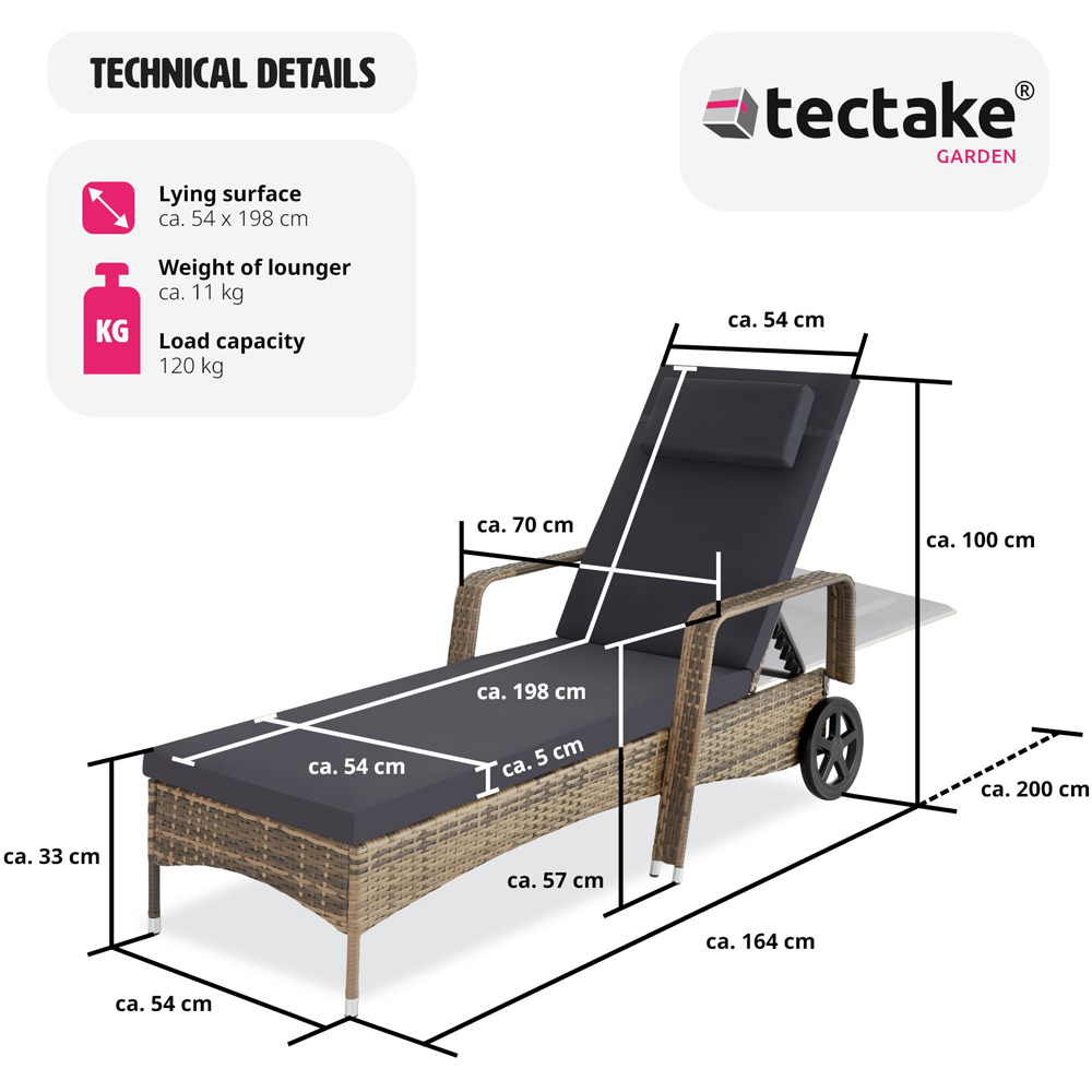 Unwind in style with our premium Sun Lounger. Perfect for the garden, poolside, terrace, or even a conservatory, this lounger blends luxury and practicality seamlessly. Enjoy ultimate comfort with its six-position adjustable backrest – effortlessly transition from sitting upright to lying completely flat. Personalise your relaxation with the adjustable and removable cushioned headrest. Transform any space into your own personal haven.