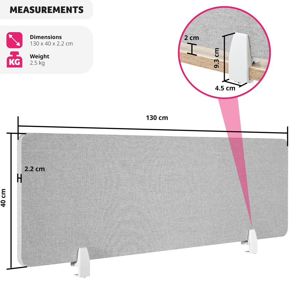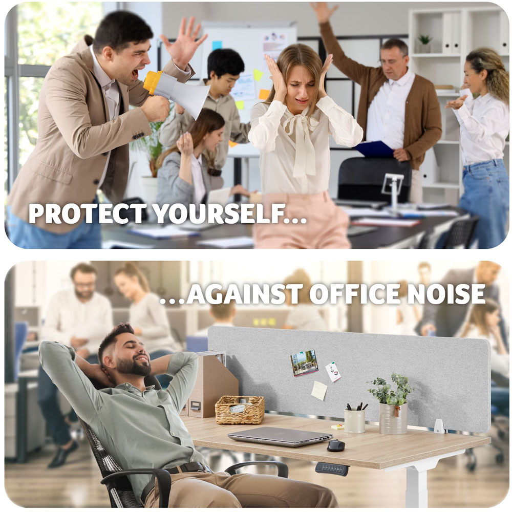 tectake Noisy Grey Sound Absorbing Plastic Desk Divider 130 x 40cm