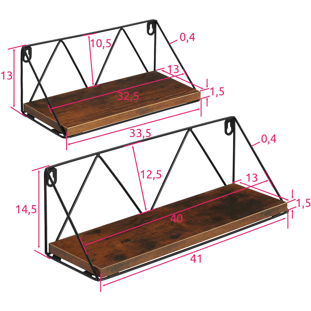 Searching for a stylish and clever storage solution? The Rockport two-piece hanging shelf set from tectake is just the ticket. These shelves embody industrial chic with their cool, powder-coated steel frames providing a striking contrast to the warm, wood-effect chipboard. The natural grain and simple design exude elegance, ensuring your decorations truly stand out. Thanks to their understated appearance, these rustic wall shelves seamlessly integrate into any existing décor, making them versatile all-rounders.