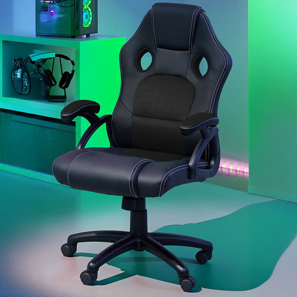Get set for action with this supple racing gaming chair from tectake. Its ergonomic shape, thick padding and breathable mesh inserts make this chair a winner, particularly if you spend extended periods at your desk or console. The robust cross base with hard-wearing double castors and seamlessly adjustable safety gas spring provide excellent stability. The plastics used ensure the exceptional stability and outstanding comfort of this low-maintenance racing gaming chair from tectake. Ideal for home or office, you're guaranteed comfort whilst gaming or working.