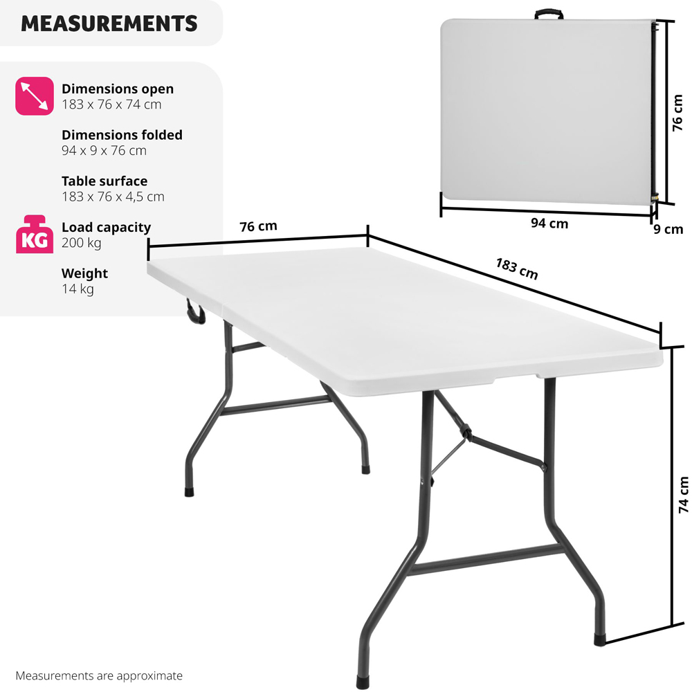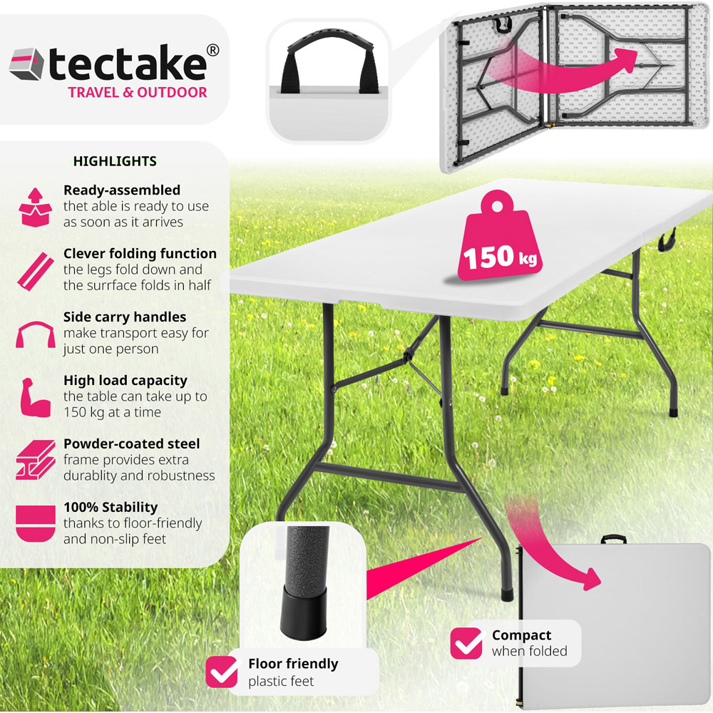 This foldable camping table from tectake is the perfect addition to your next outdoor adventure, or even just for use at home, in the garden or on the road. The durable plastic tabletop is moisture-resistant and resistant to other environmental conditions, making it ideal for the unpredictable British weather. Whether you're planning a picnic or a camping trip, this folding table is ready to lend a helping hand.