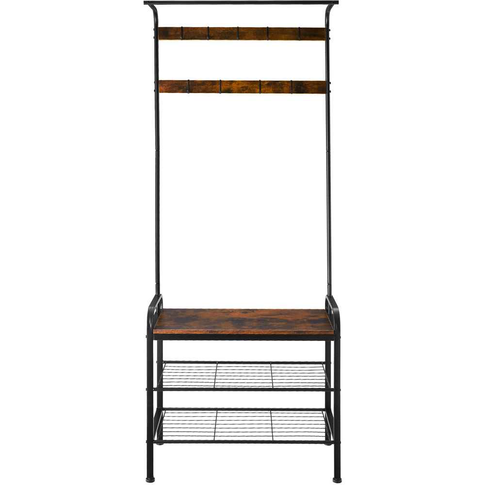 tectake Wichita 3 Tier 9 Hook Dark Wood Coat and Shoe Rack