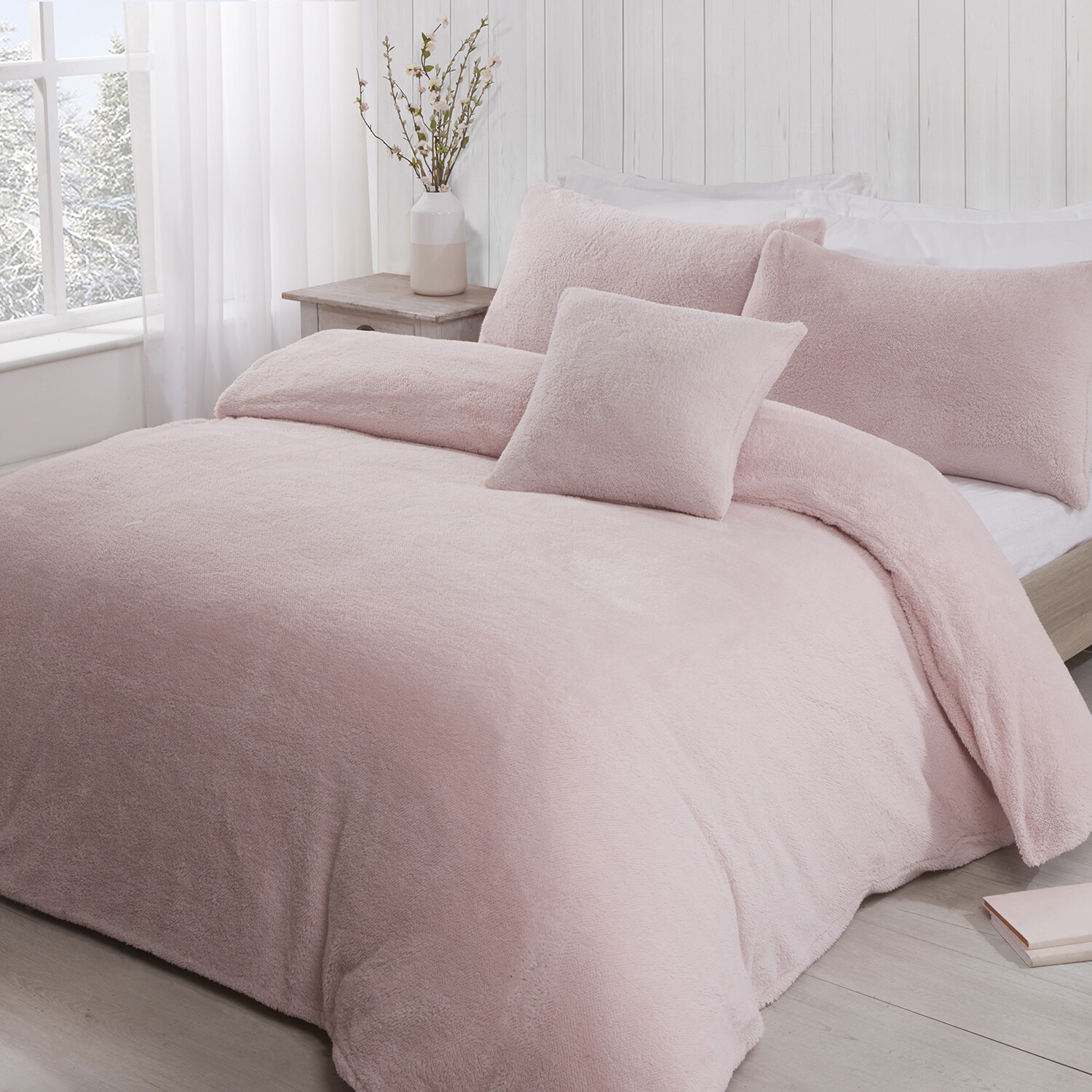 Teddy Fleece Duvet and Pillow Case Set - Blush / King