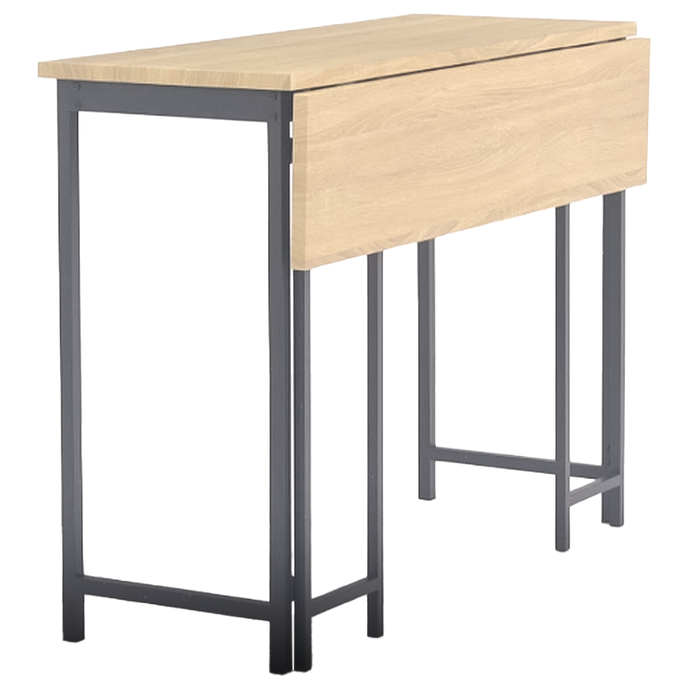 This sleek and stylish high work table is the perfect minimalist addition to any home office. Its durable black metal frame and Charter oak effect top create an attractive workspace and additional display area. Need extra room? Simply flip up the extension for a spacious, additional work area. The finished design allows for freestanding placement anywhere in the room at any angle. A smart solution for maximising your workspace.