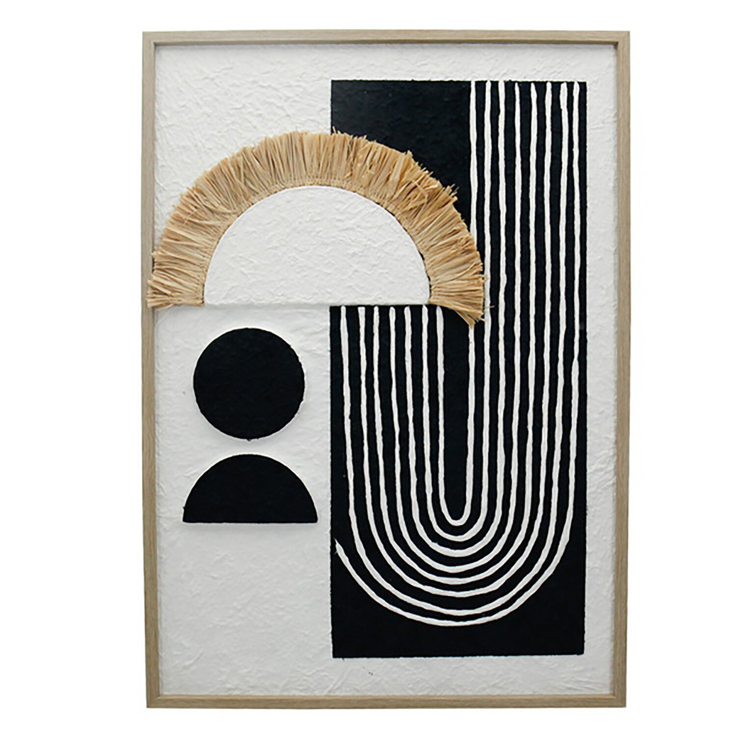 Elevate your space with the Textured 3D Abstract Tassel Framed Art. This modern piece features a monochrome colour scheme and contemporary shapes, accented with a neutral, textured straw detail. Two unique designs are available, each offering a fresh aesthetic. The easy-to-hang design makes it a stunning centrepiece for living rooms, hallways, or bedrooms.
