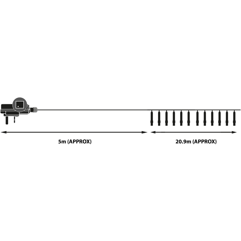 Get ready to light up the festive season! These warm white Christmas chaser lights from The Christmas Workshop feature 300 LEDs, perfect for adding a festive sparkle to your tree, home, and outdoor areas. Spanning 20.9 metres, with a generous 5-metre lead from the plug to the first bulb, these versatile string lights are ideal for decorating large spaces like Christmas trees and outdoor greenery. Suitable for weddings, birthday parties or any family event where illumination is needed, these multi-functional lights emit a warm and inviting glow. Customise the ambience with eight different light settings: combination, sequential, chaser flashing, twinkle flashing, waves, slow glow, slow fade and steady on. Please ensure the transformer and mains power box remain indoors and dry, even when the lights are used outdoors. These energy-efficient LED chaser lights offer the perfect illumination to enhance both indoor and outdoor spaces.