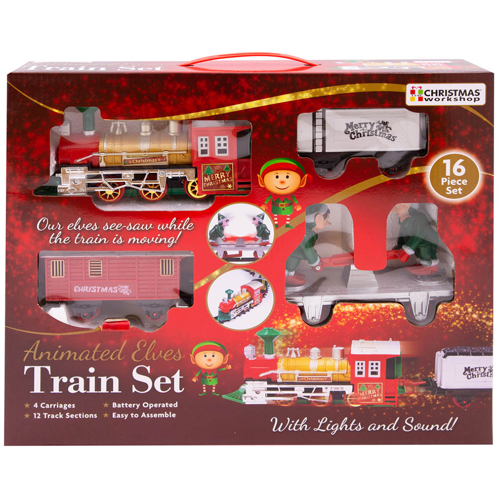 Add a touch of festive magic to your home with The Christmas Workshop Animated Elves Christmas Train Set! Designed to circle merrily around the base of your Christmas tree, this delightful set includes everything you need to create a joyful Christmas atmosphere. Complete with sounds and lights, it's guaranteed to bring extra excitement to your holiday celebrations.