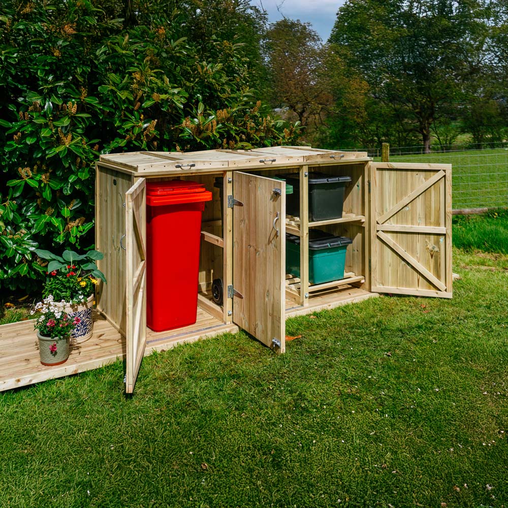 The Garden Village Shireburn 2 Recycle Box 2 Wheelie Bin Shed