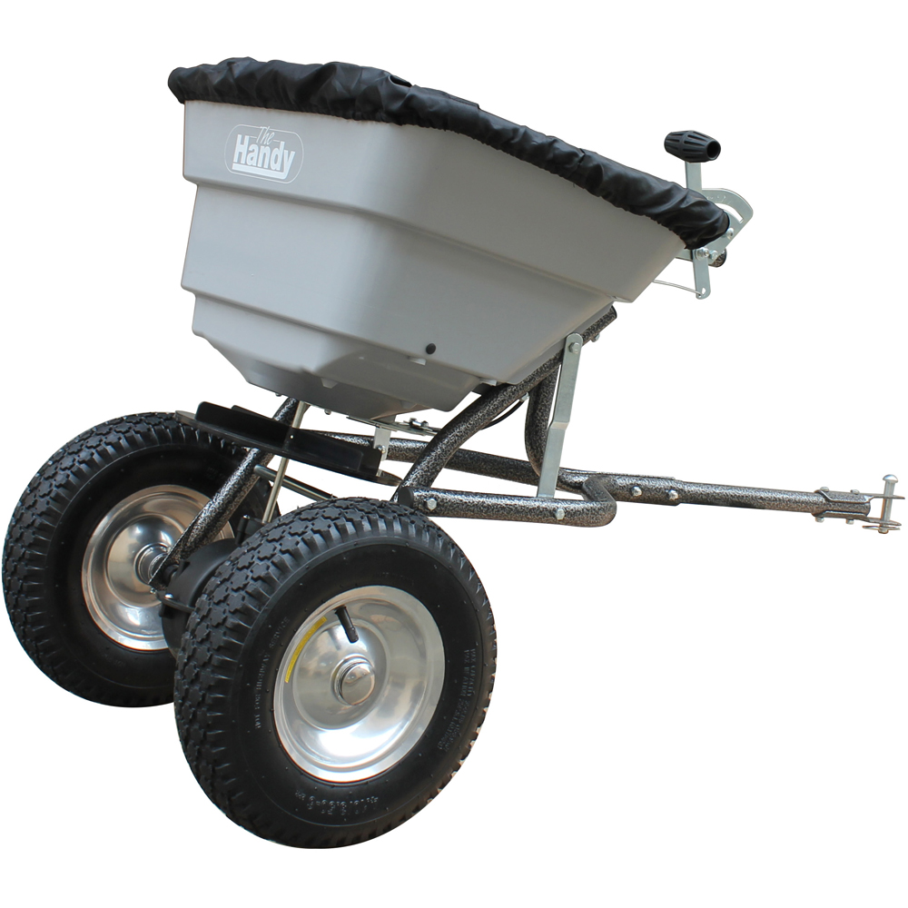 Maintain a healthy lawn and garden with The Handy THTS Towed Broadcast Spreader 36kg. Designed for use with garden tractors, this high-capacity spreader allows you to quickly and evenly distribute fertiliser, grass seed, or ice-melting salt across large areas. The wide-spreading capability helps you achieve lush, healthy lawns in summer and safe, ice-free pathways in winter. With a generous 36kg capacity and an expansive 3.05m to 3.66m spread width, this high-performance spreader is designed to handle tough outdoor conditions. Plus, the adjustable feed control allows precise distribution.
