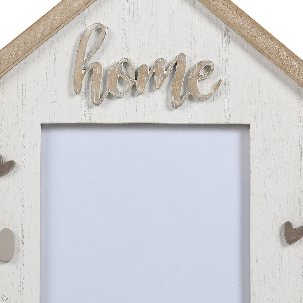 Showcase your cherished family memories with this charming Family Home Illustrated Frame. Its delightful house design, adorned with hearts, trees, a fenced home, and a sweet family-of-three figurine, adds a unique touch to any room. Designed for both hanging and freestanding display, simply use the convenient back hook for effortless setup. A truly captivating piece that will surely become a cherished focal point in your home.