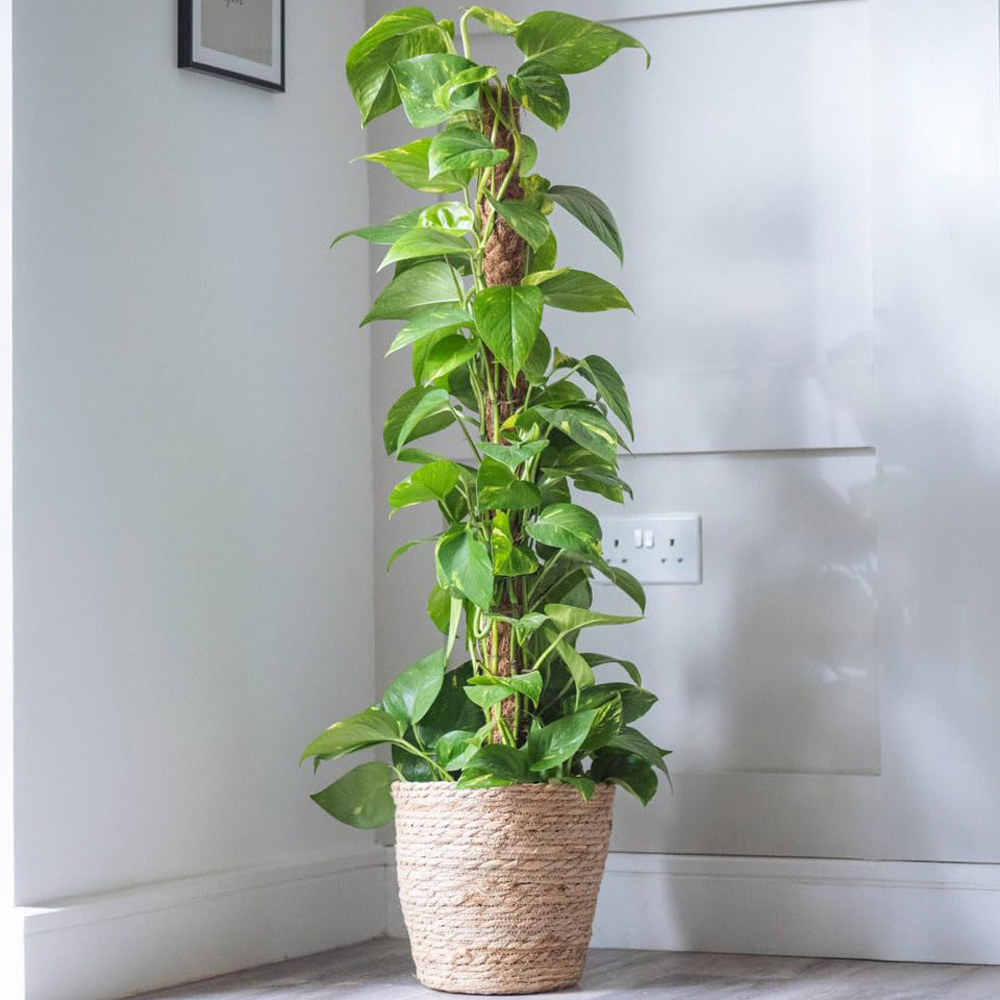 Introduce a touch of the tropics to your home with Epipremnum aureum, commonly known as Devil's Ivy or Ceylon Creeper. This captivating houseplant showcases long, elegant stems adorned with glossy foliage, beautifully marked with golden streaks. Its natural climbing habit, facilitated by aerial roots, makes it ideal for creating a striking vertical display without sacrificing floor space.